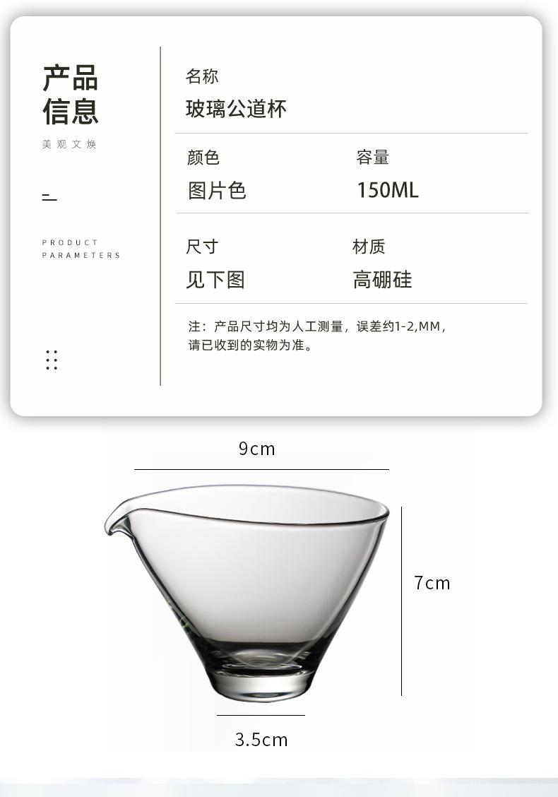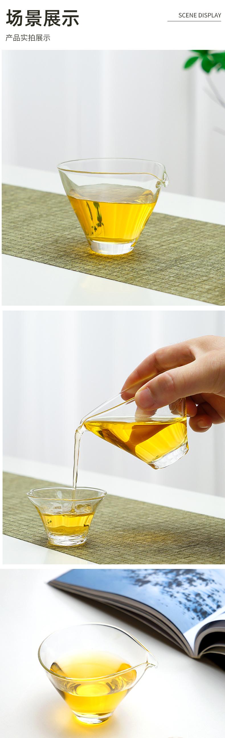 Copa de feria de vidrio transparente estilo japonés para dividir el té, taza de té de alta resistencia al calor de borosilicato, accesorios para juego de té Kung Fu, copa masculina de boca puntiaguda