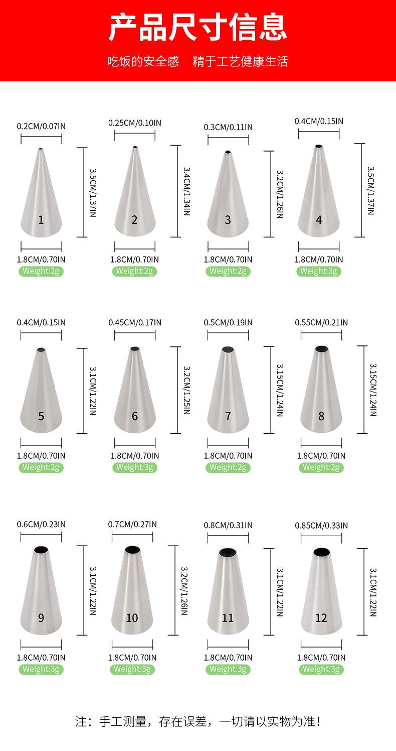 Boquilla redonda de boca pequeña para crema, boquilla para escribir con forma de línea de arrastre, boquilla para Macaron, herramienta para hornear de acero inoxidable 304