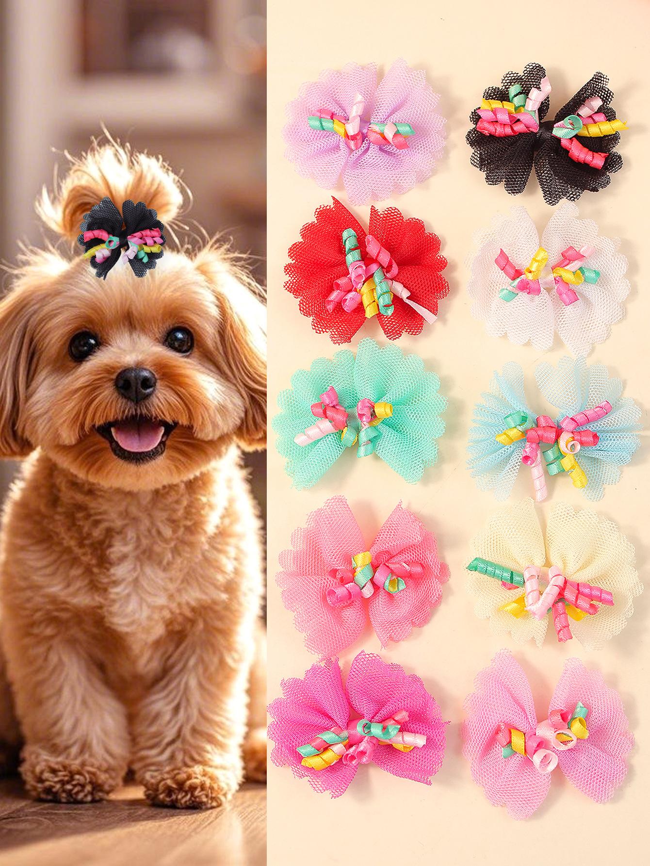 [Nombre] Mascota transfronteriza malla pelo rizado banda elástica para el cabello banda para el cabello accesorios para gato perro joyería combinación de colores cuerda para el cabello decorativa
