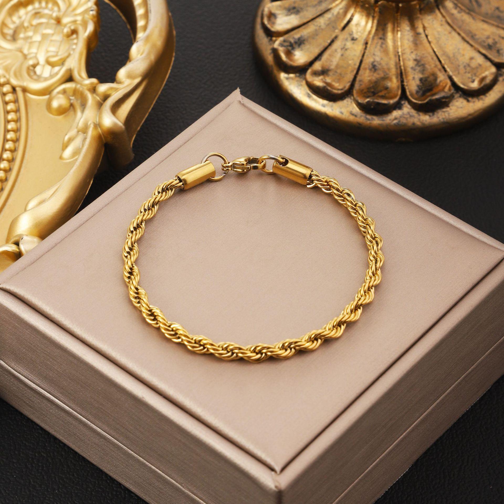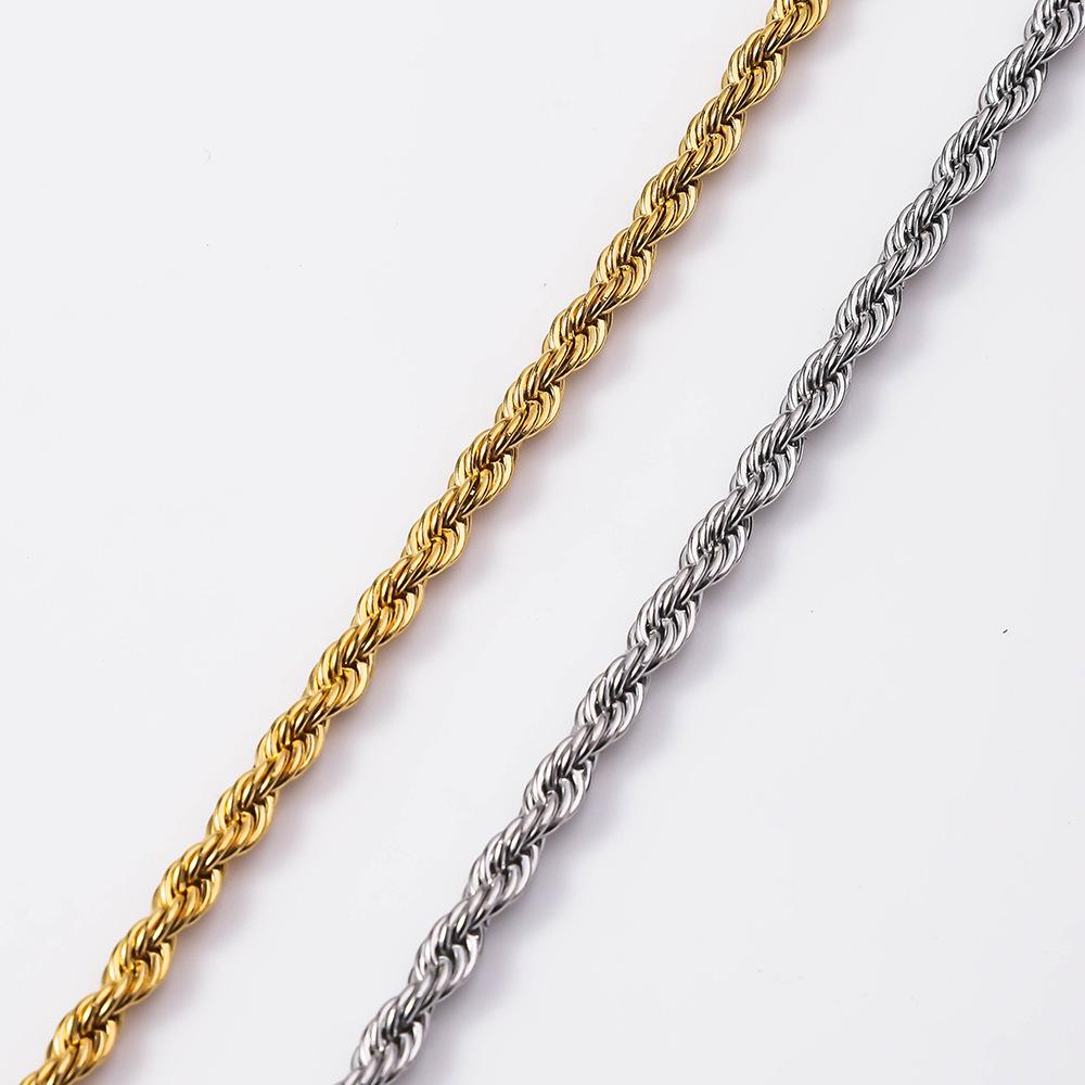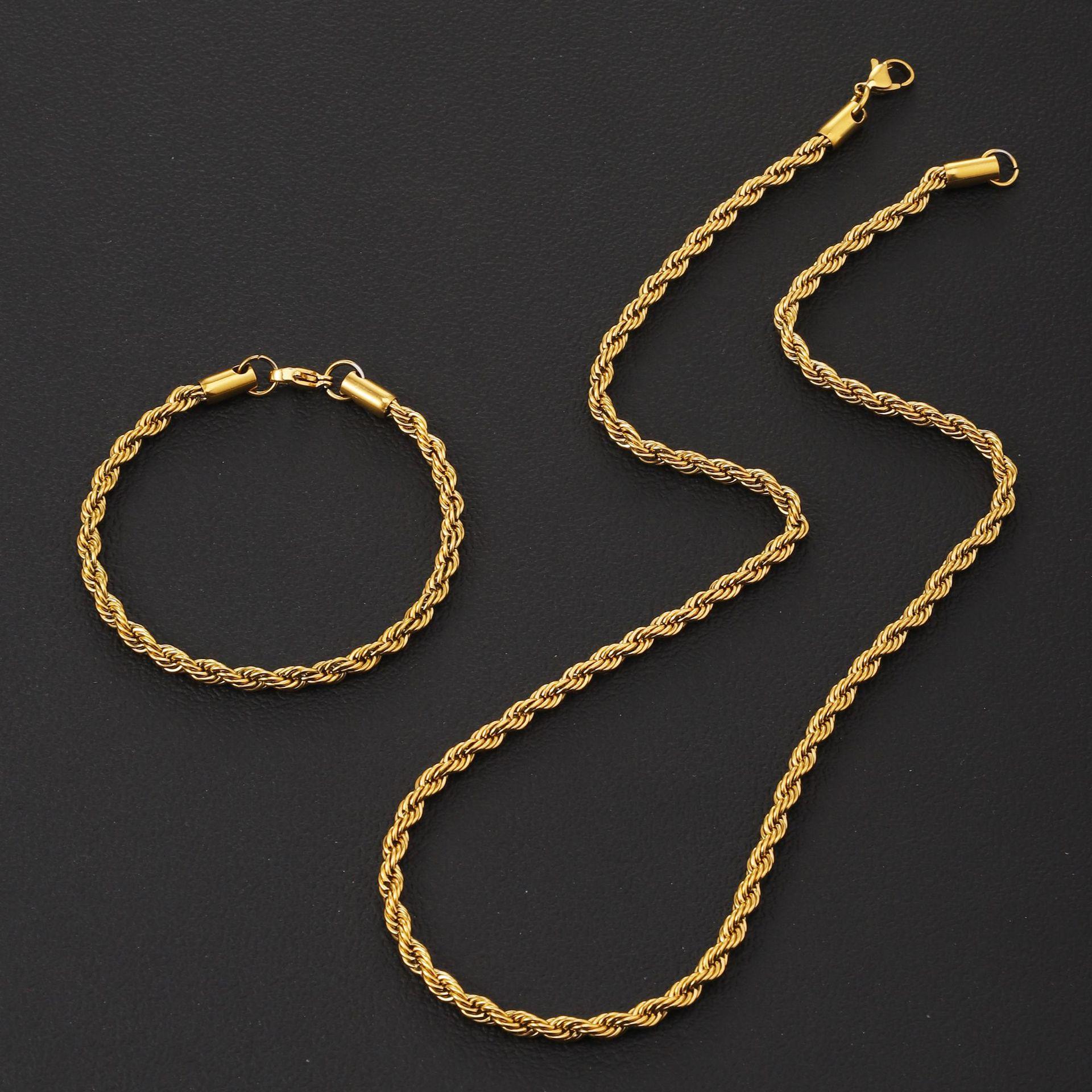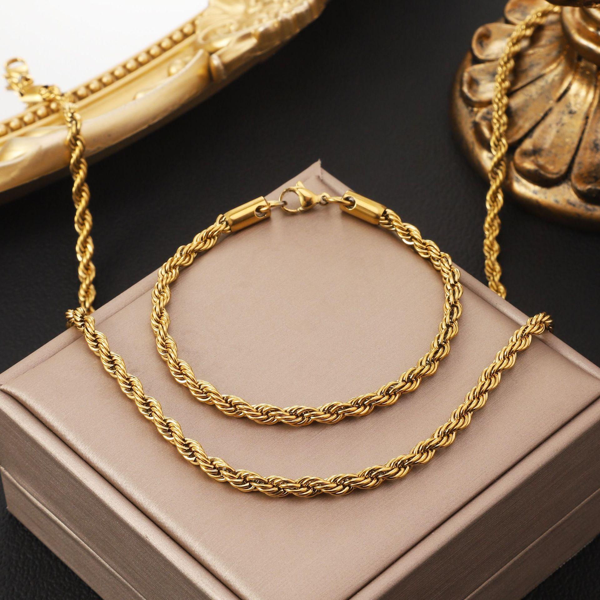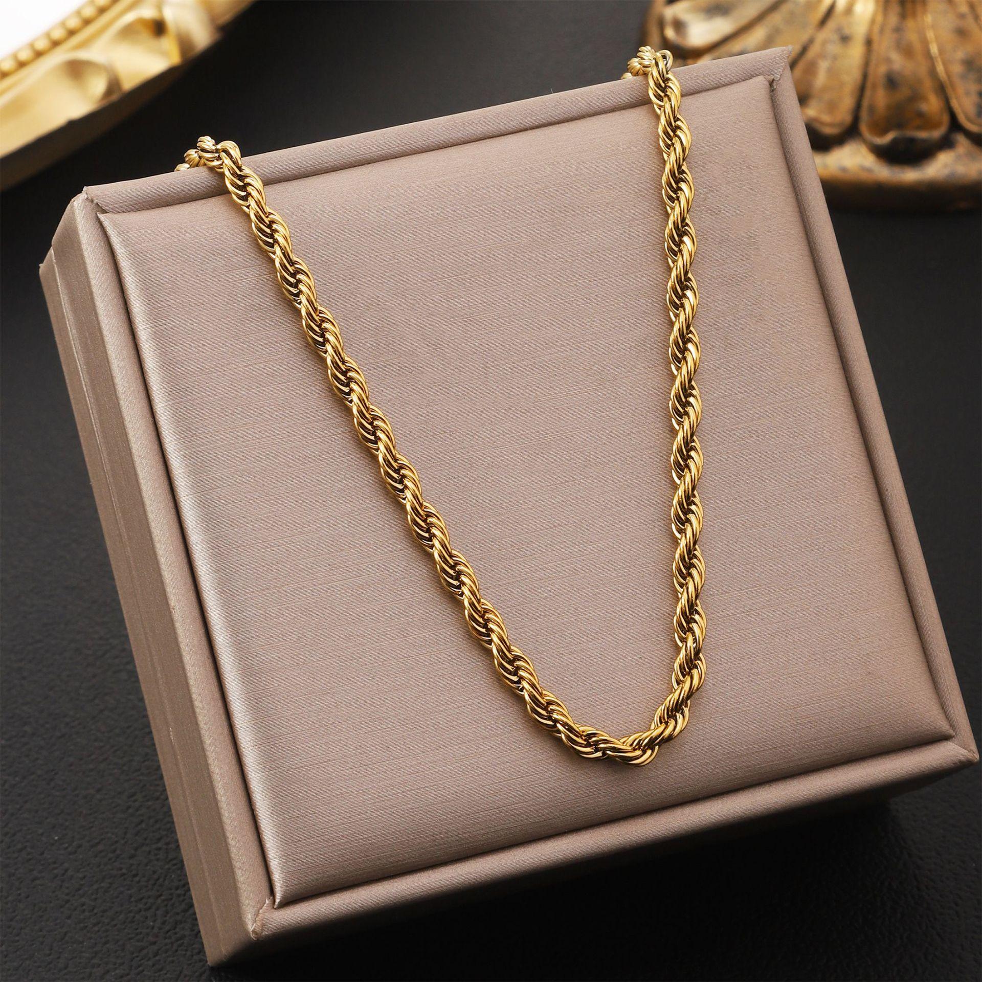 Collar de Cadena Twist de Acero Inoxidable Transfronterizo Europeo y Americano Más Vendido para Mujer Chapado en Oro Real de 18K Cadena para Clavícula Pulsera de Acero de Titanio para Hombre