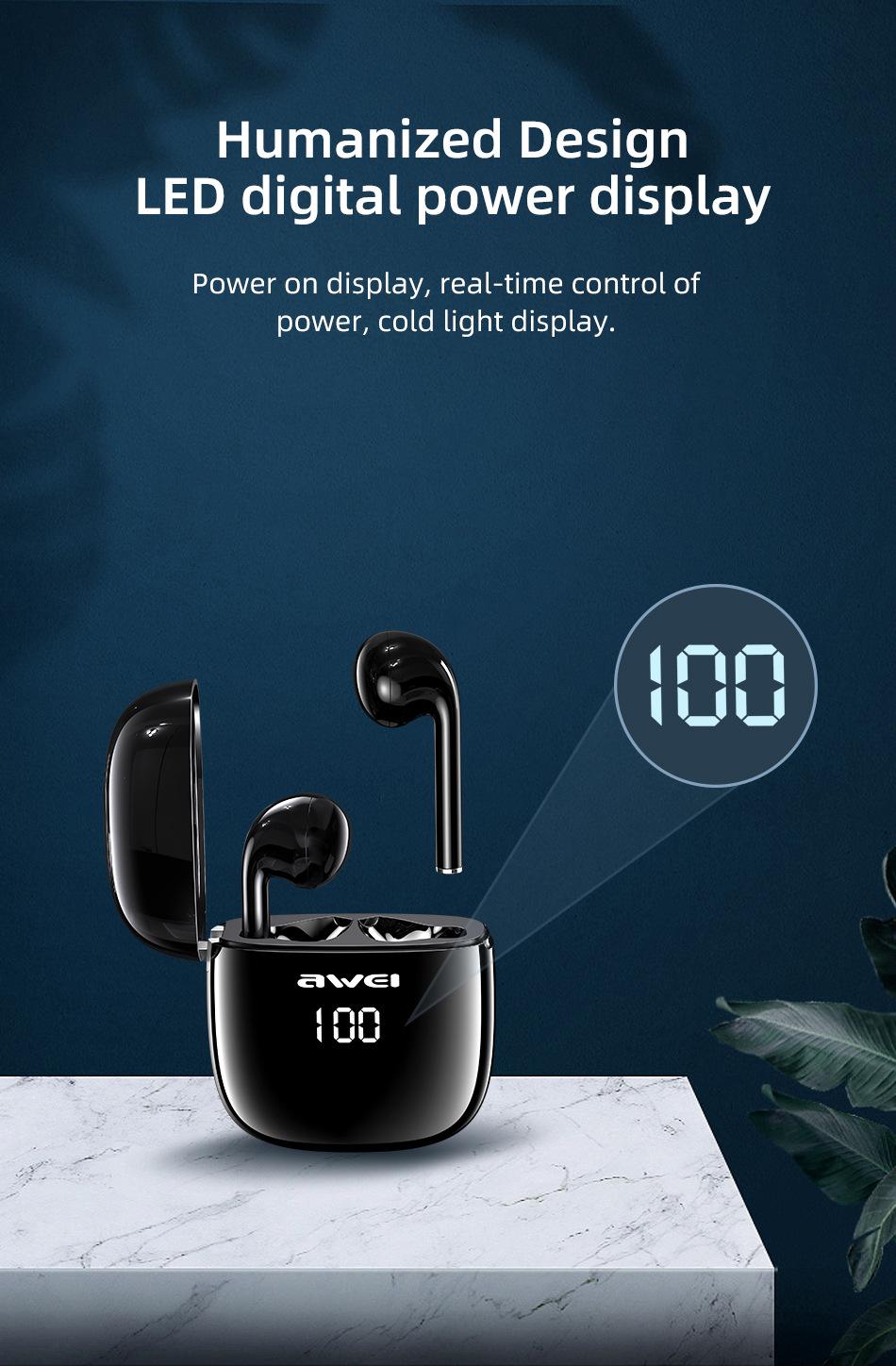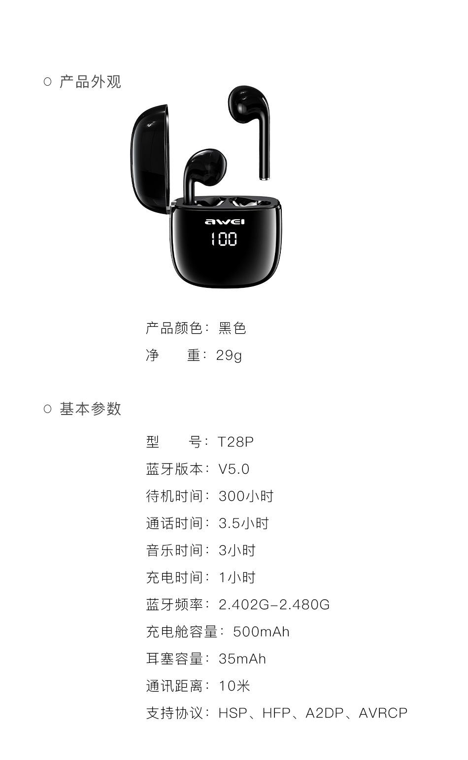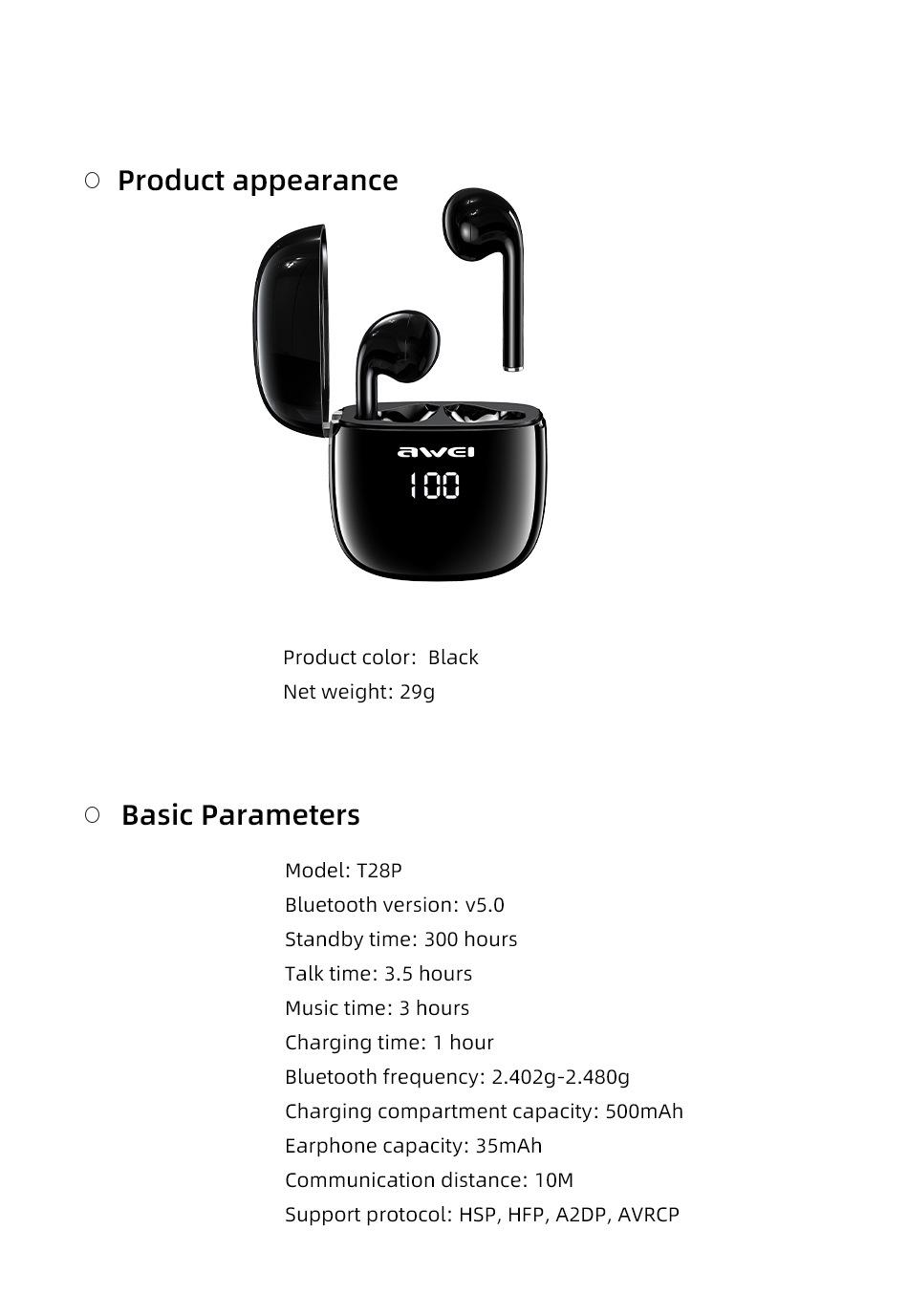 Audífonos TWS deportivos de segunda generación T28P función de pantalla digital reducción de ruido audífonos inalámbricos semi-in-ear estuche de carga