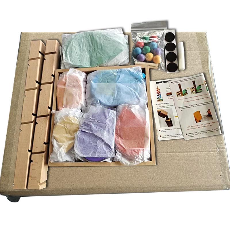 Accesorios para árbol musical: 30 hojas (6 colores, 5 hojas de cada uno) ➕10 bolitas pequeñas➕una base de almacenamiento➕2 palitos de madera➕1 hoja de puntos adhesivos➕1 hoja de pegatinas antideslizantes➕1 mini destornillador➕1 tornillo