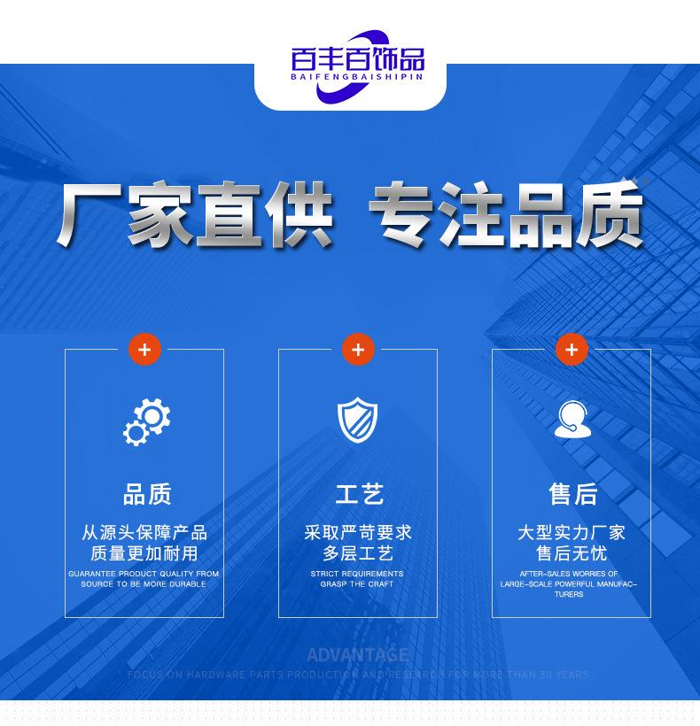 Dongguan Baifengbai Productos Artesanales de Acero Inoxidable Co., Ltd.La empresa es un fabricante integral especializado en el desarrollo, producción y ventas de herrajes y accesorios. Desde el establecimiento de la empresa, hemos estado persiguiendo"Sigue mejorando, la calidad primero"El propósito emprendedor de:El negocio de la empresa se ha desarrollado rápidamente en los últimos años con la política de "perseguir la excelencia y servir de todo corazón". La empresa cuenta con un equipo de gestión altamente cualificado y una serie de equipos de producción automatizados. Con la ayuda del modo de gestión moderno, puede diseñar y fabricar nuevos estilos, especificaciones completas y precios razonables para los clientes. La empresa produce principalmente acero inoxidable304、316LAccesorios de joyería: cierre magnético de acero inoxidable(Redonda, cuadrada, diamante, en fila, forma especial...), hebilla de cordón de cuero, botón a presión de langosta, espiral, llavero, anillo de apertura y cierre... Los productos terminados incluyen:Aretes y Pulseras,Collares y tobilleras.... Más vendidos en casa y en el extranjero(Europa y América,Japón y Corea del Sur,Australia…),Bienvenido a realizar pedidos,Le atenderemos con todo el corazón.!