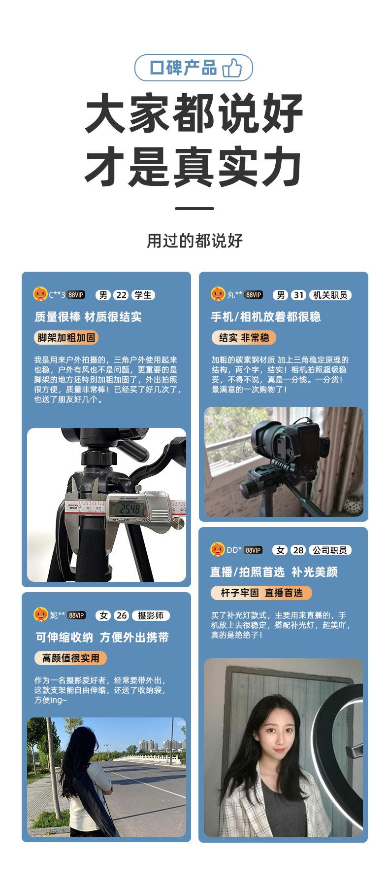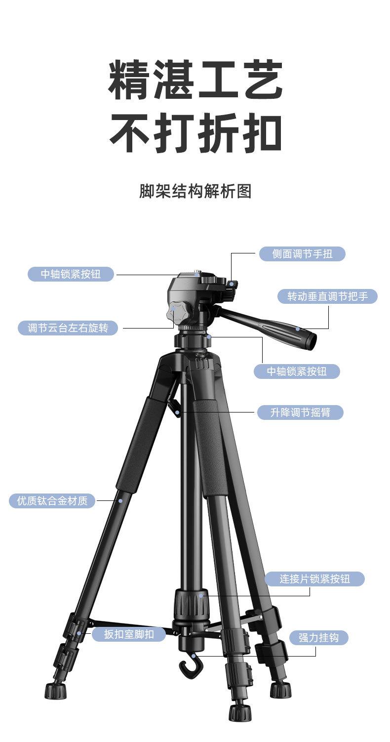 1.4m [thick carbon steel] tripod + single camera + selfie + storage bag included