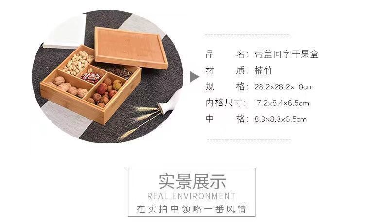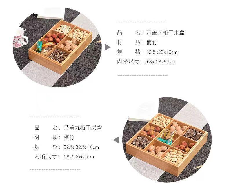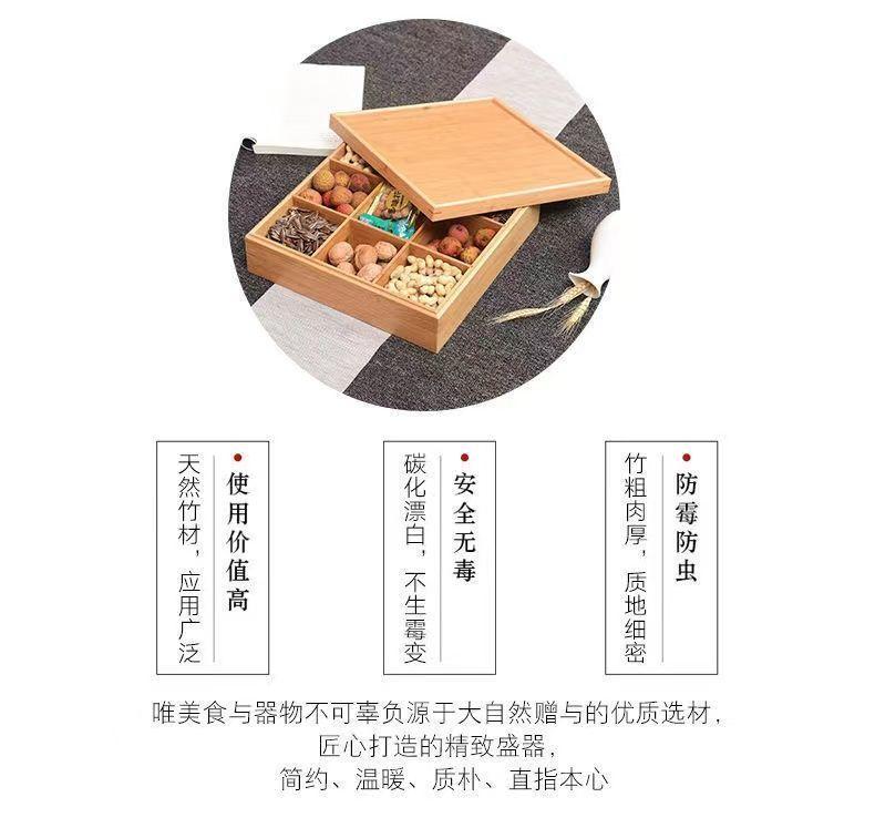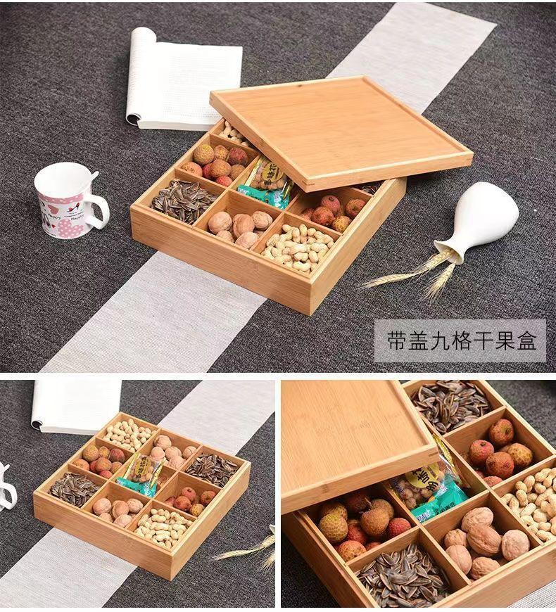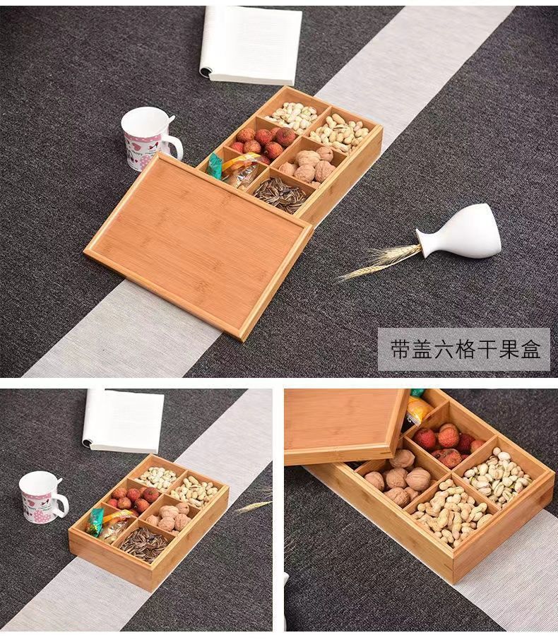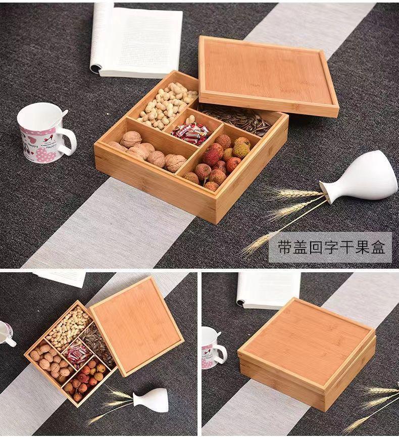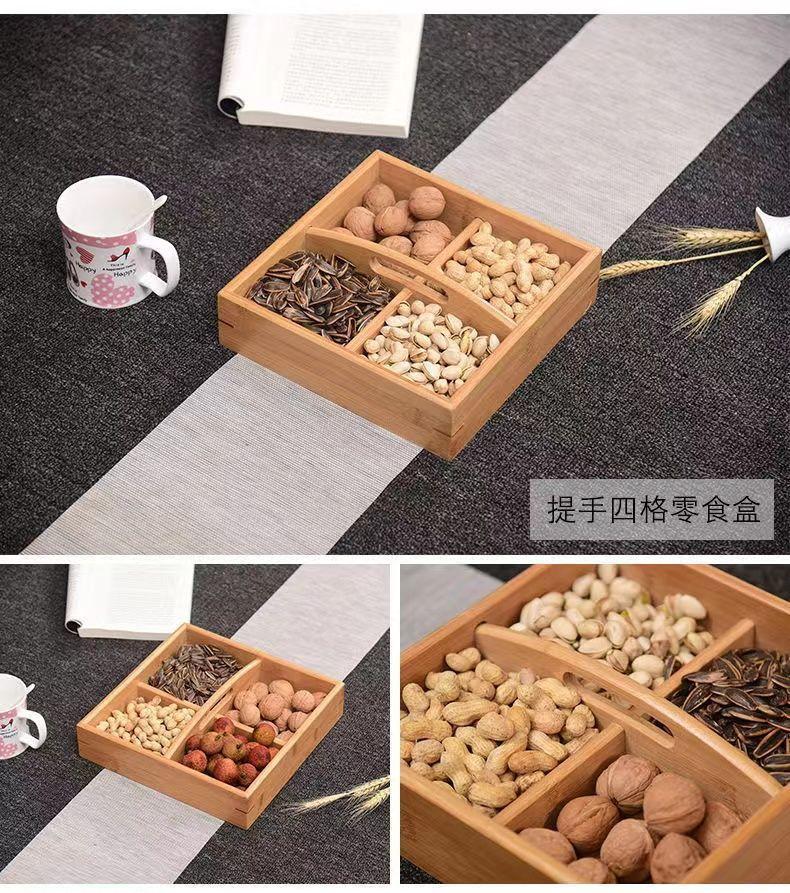Plato de Frutas Compartimentado Caja de Frutos Secos China Sala de Estar Hotel Plato de Aperitivos Caja de Dulces de Año Nuevo Caja para Semillas de Melón Asa Madera Maciza Caja para Nueces