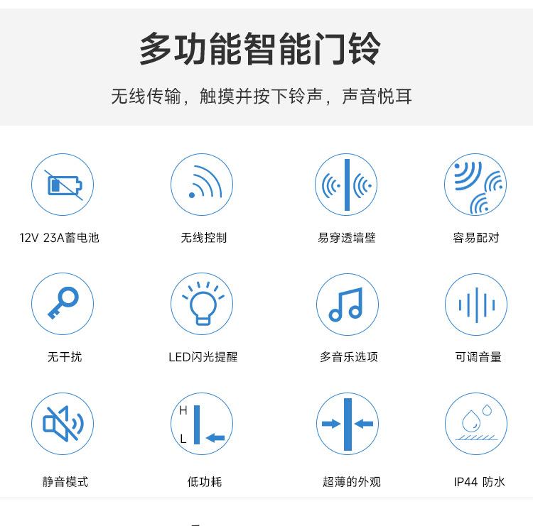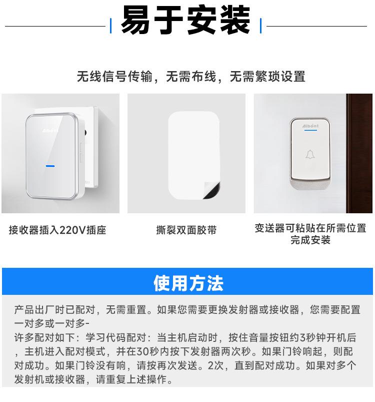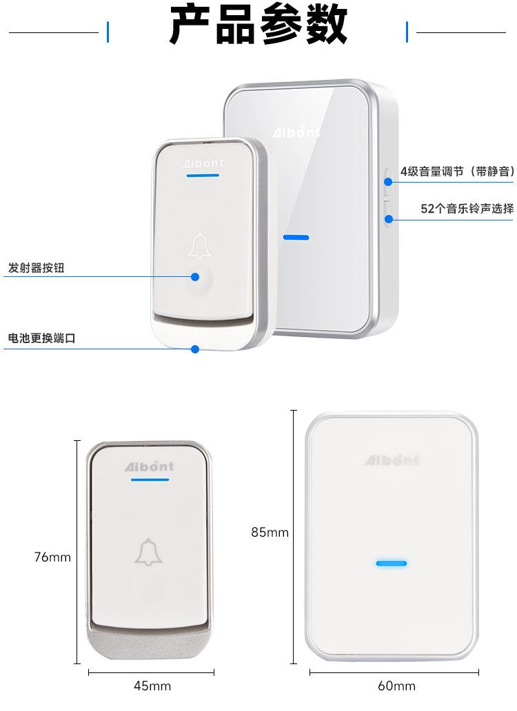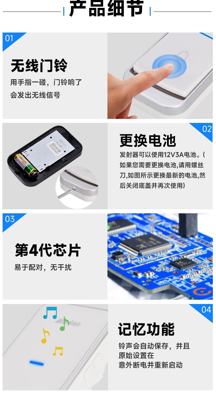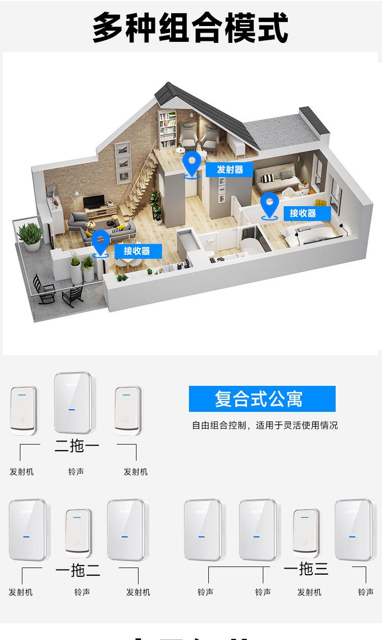Fabricante Venta al por Mayor Timbre Inalámbrico Uno a Dos Localizador Inalámbrico Timbre Musical Electrónico Inteligente Timbre de Puerta para el Hogar