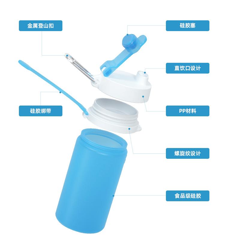 Vaso de agua de silicona plegable de gran capacidad botella de agua deportiva botella de agua deportiva para exteriores regalo Vaso fabricantes de logotipo personalizado