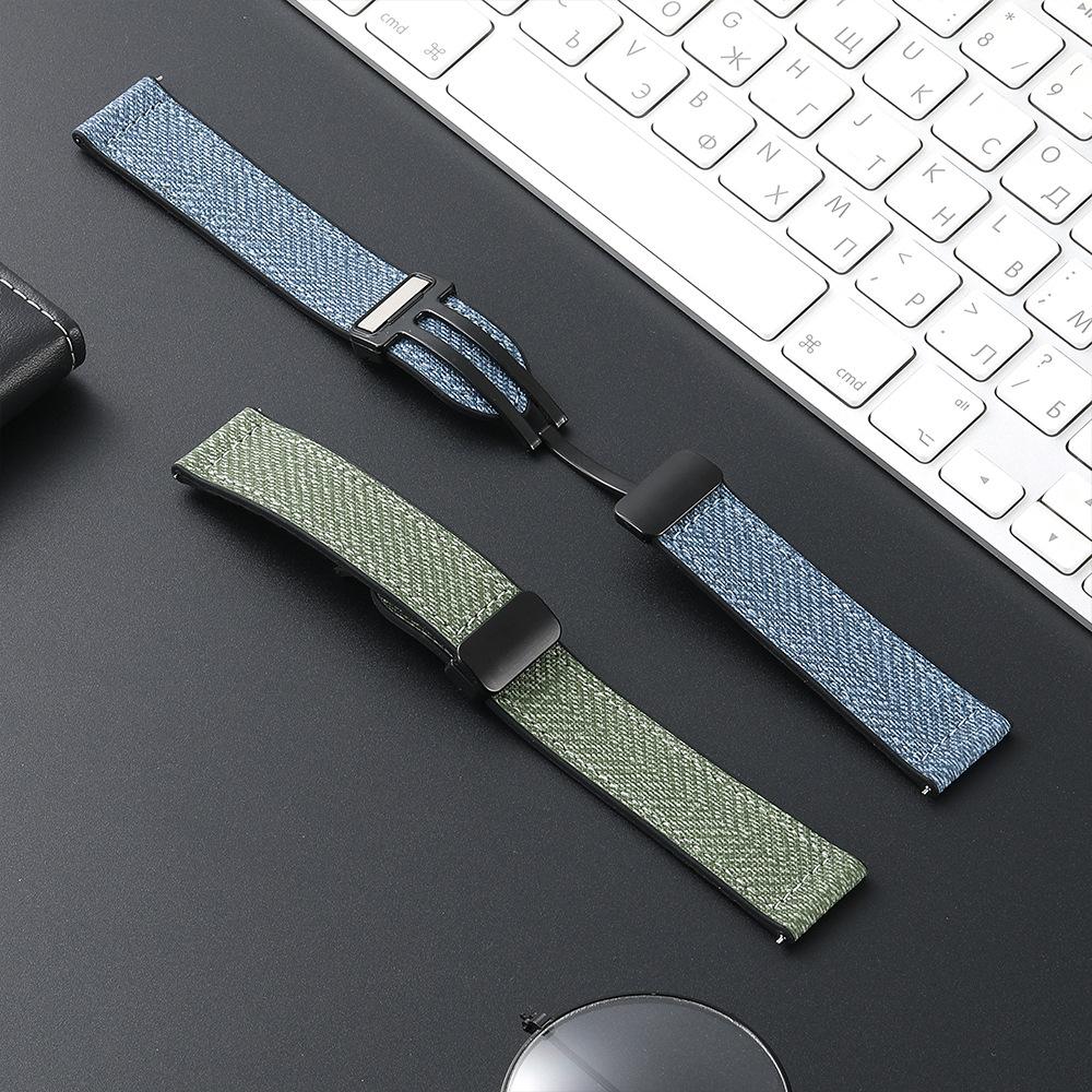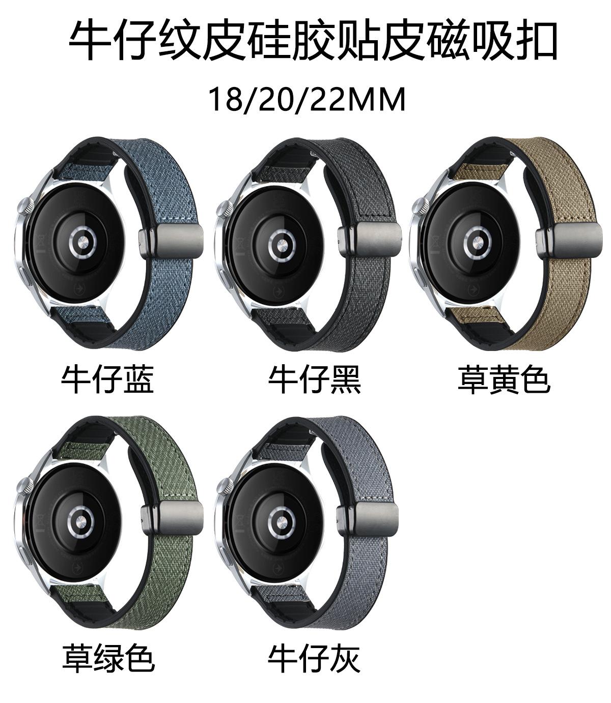 Adecuado para Huawei Watch Gt5 Xiaomi Samsung 6 Correa de Reloj de Cuero con Patrón Denim Gt6 de Cuero de Silicona con Hebilla Magnética 22mm