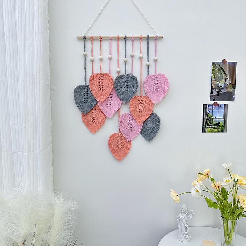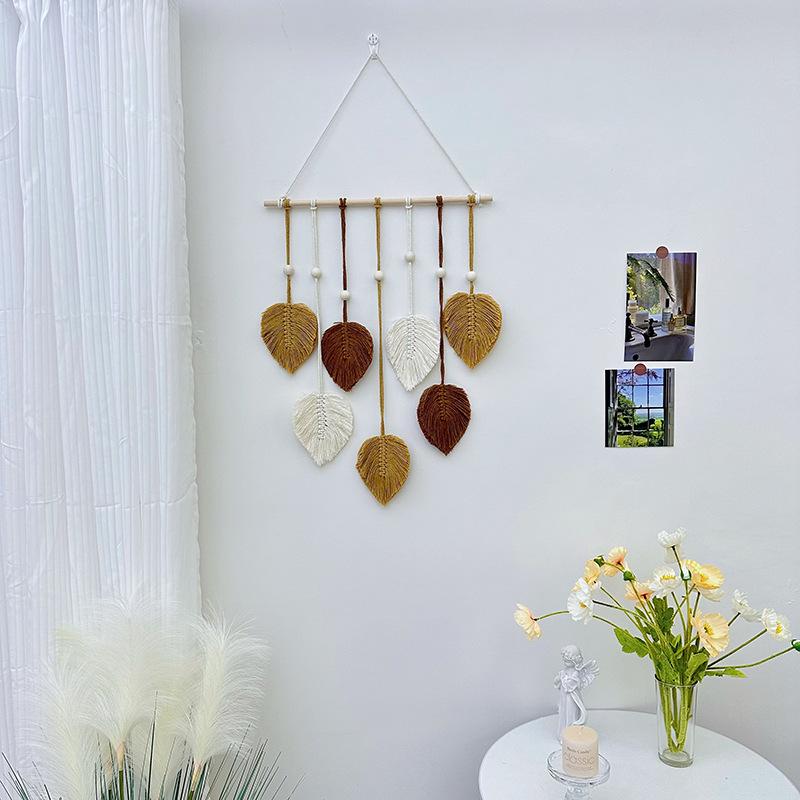 Dormitorio Ins Pared Hojas Tapiz Colgante de Pared Decorativo Himia Tejido a Mano Acabado Colgante de Pared para Habitación Casa de Familia