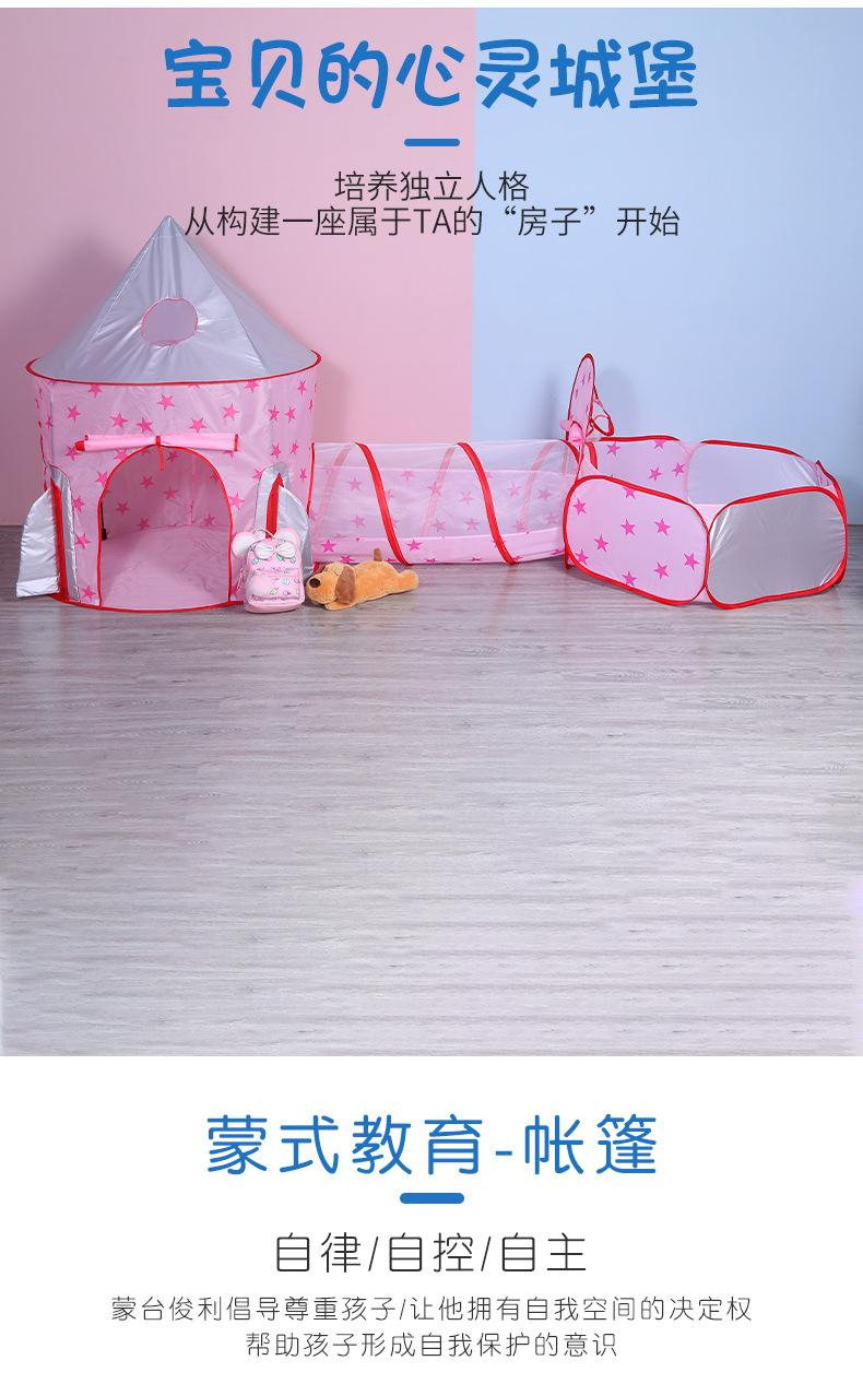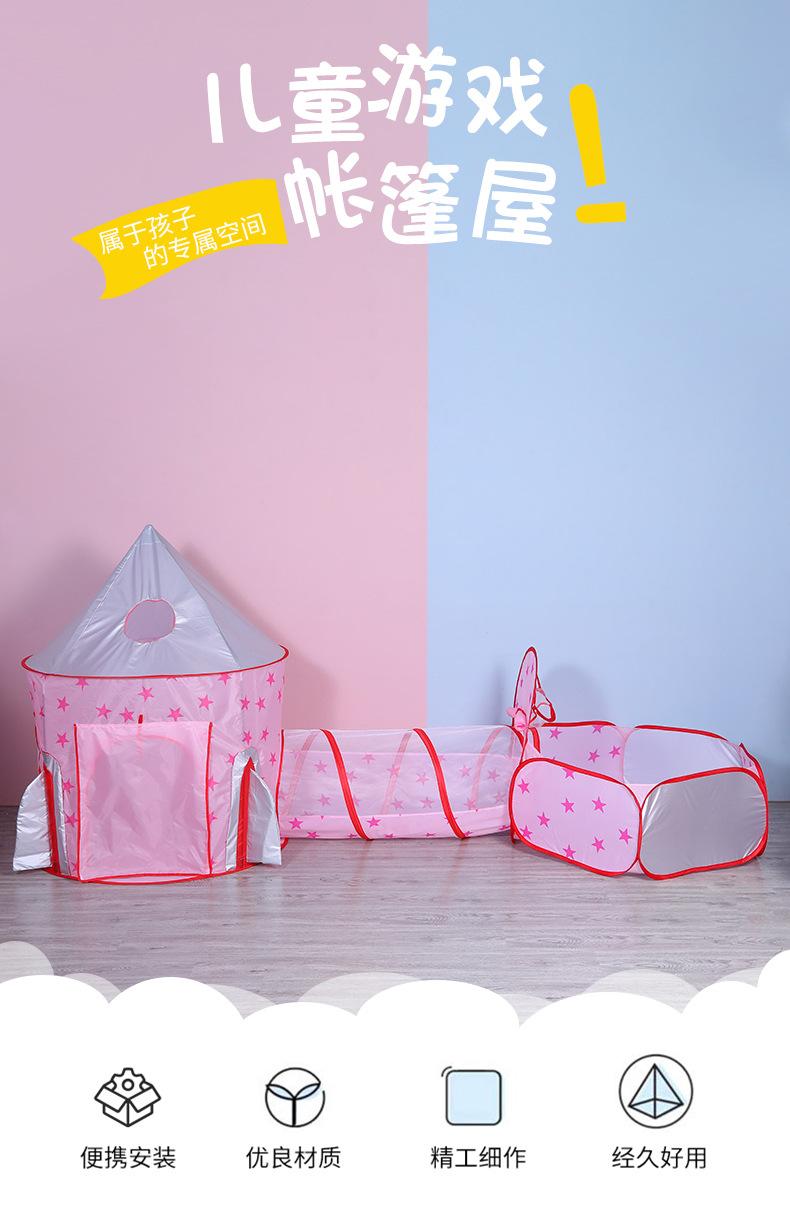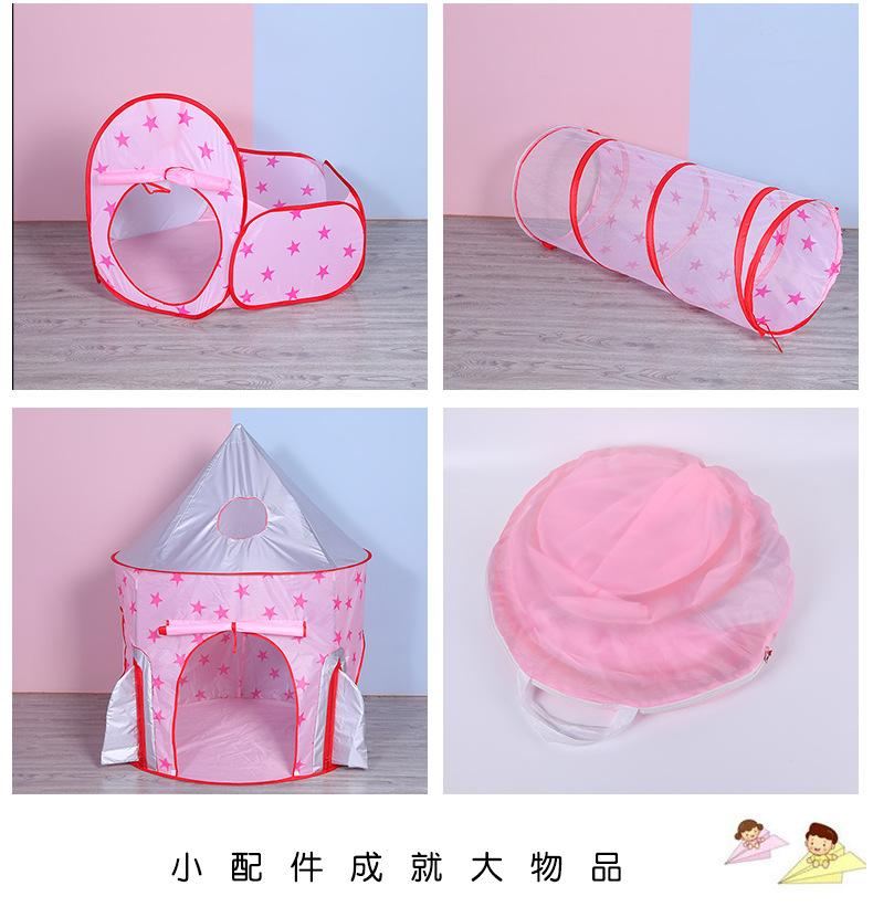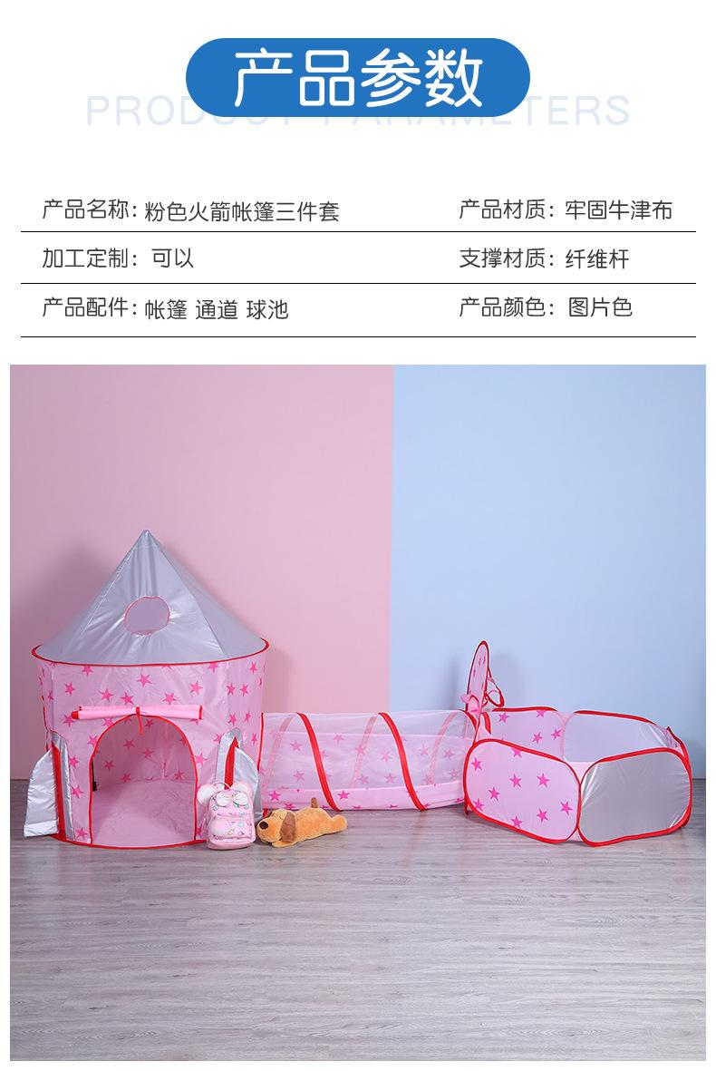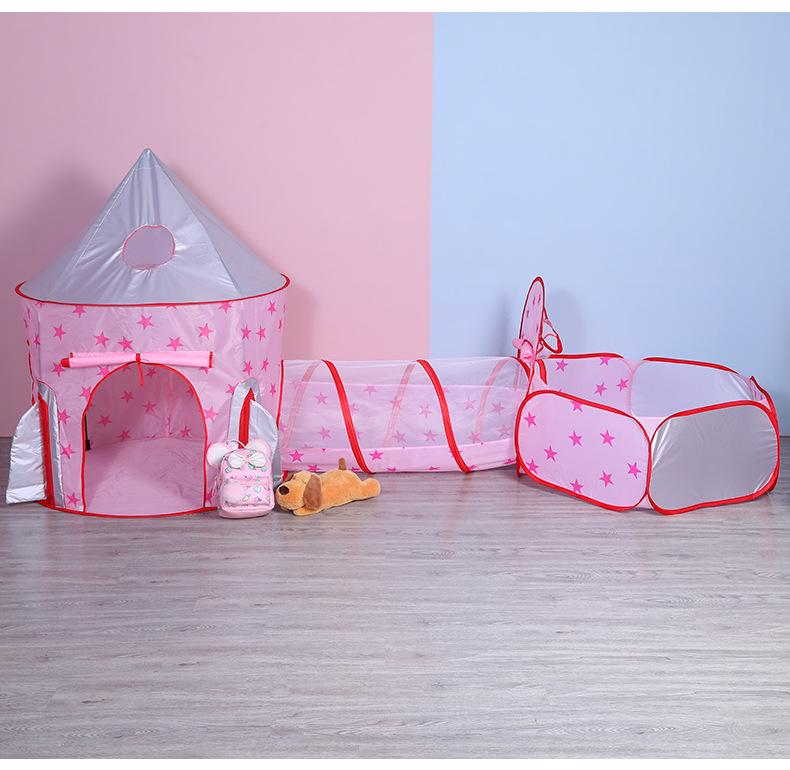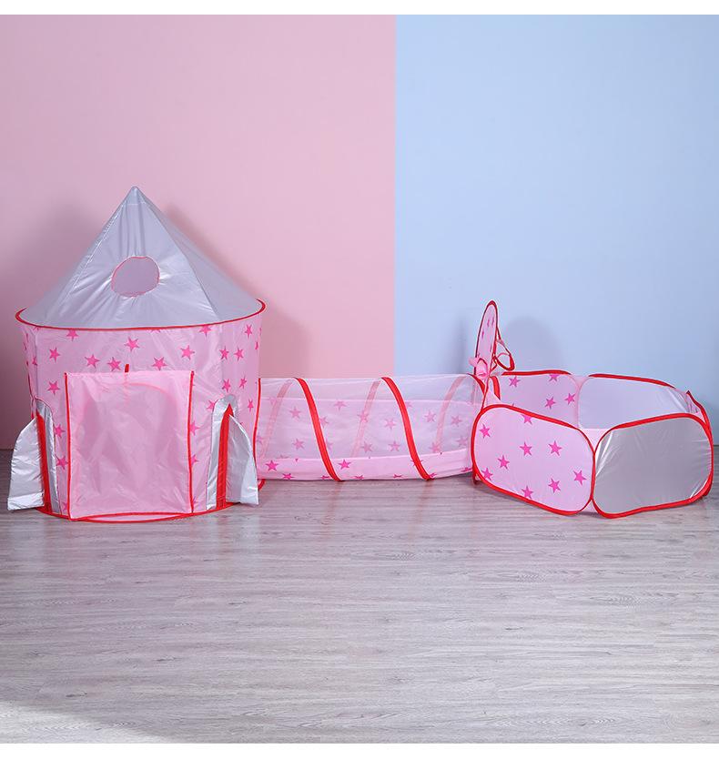 Pink rocket tent three-piece set, Tent 105*135CM, Channel 46*120CM, Ball pool 120*36*72CM