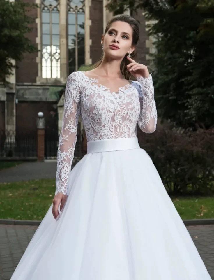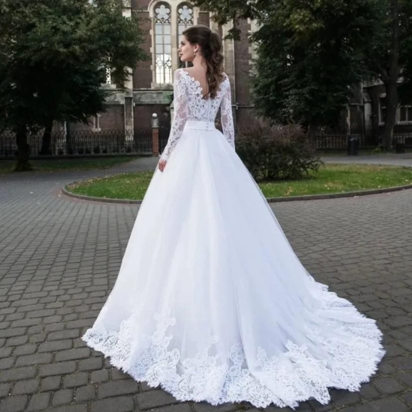 Vestido de Novia de Encaje Francés 2025 Verano Nuevo Vestido de Novia Casual de Manga Larga para Mujer Vestido de Cola Pequeña Vestido Falda Larga