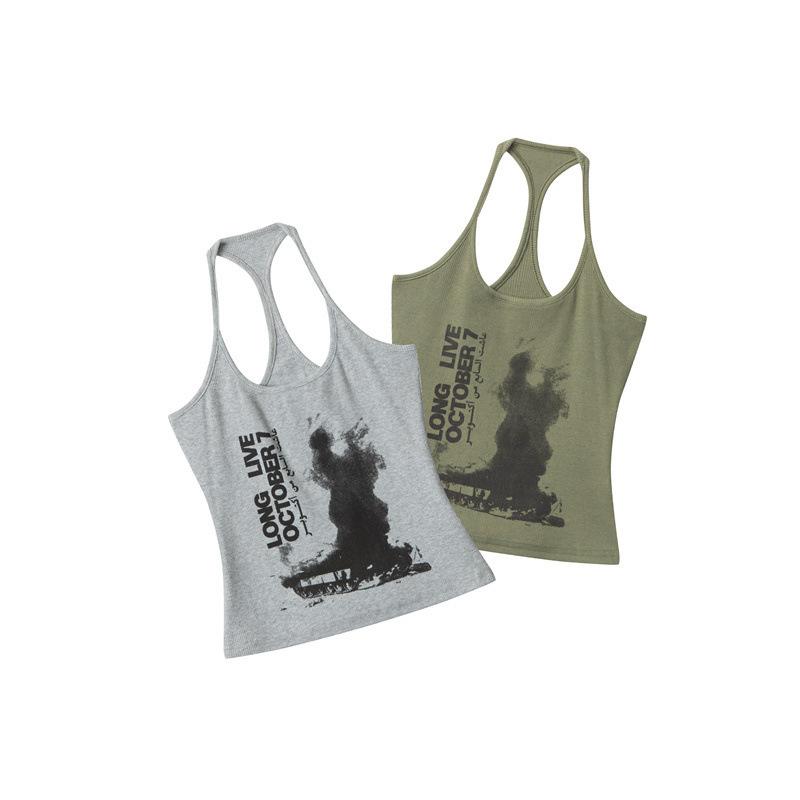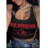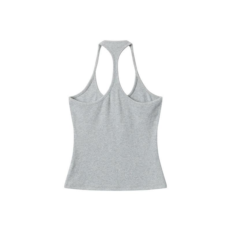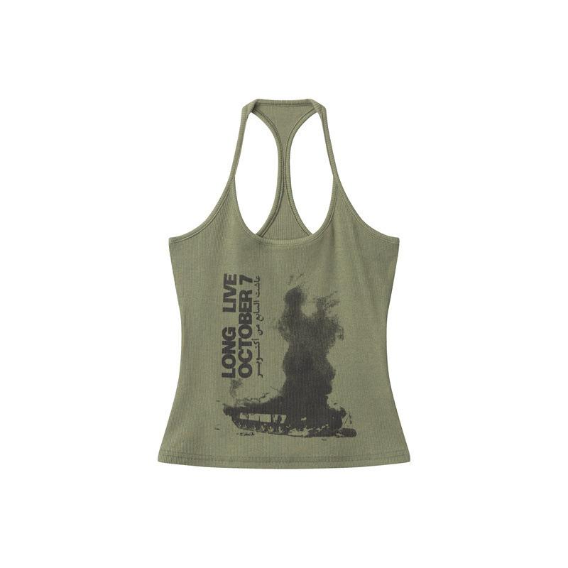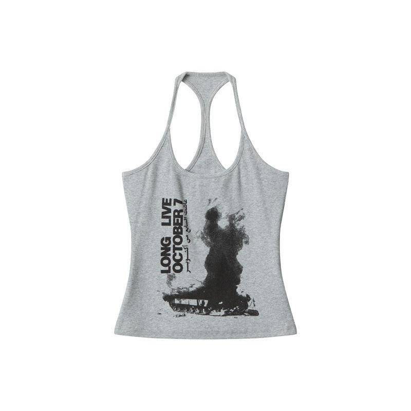 Chaleco pequeño de tirantes con estampado de letras europeas y americanas para chica picante, corte ajustado para mujer, top versátil de calle alto, Ins corto, algodón gris verdoso