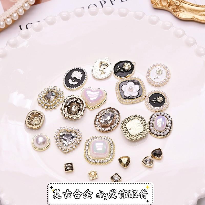 Versión coreana de los nuevos accesorios de aleación de perlas de pedrería de estilo vintage hechos a mano DIY material para accesorios para el cabello con lazo