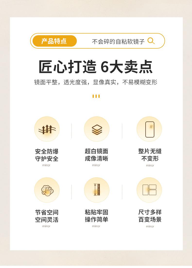 Espejo Suave Personalizado Montado en la Pared Autoadhesivo Acrílico Espejo de Cuerpo Entero Baño Baño Maquillaje de Alta Definición Lente de Tamaño Pequeño