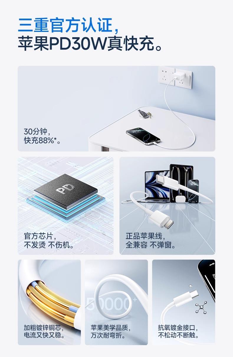 Cable de datos Apple transfronterizo PD30W carga rápida para la serie iphone 12/15/16 cable de carga PD20w carga rápida