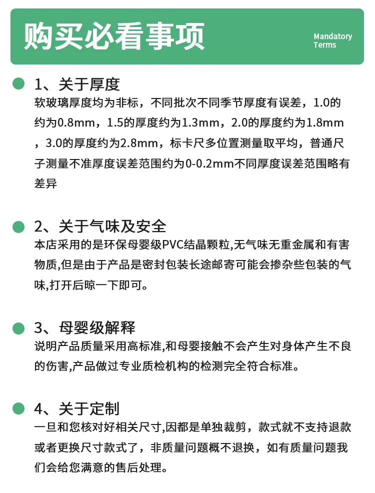 3.0mm thick* frosted, rounded corners, maternal and infant grade odorless and antibacterial