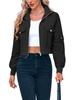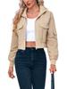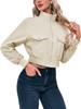 Nuevo temperamento transfronterizo europeo y americano color sólido cuello alto manga larga chaqueta corta moda decoración de bolsillo cremallera cintura chaqueta, peso: 285-365 gramos
