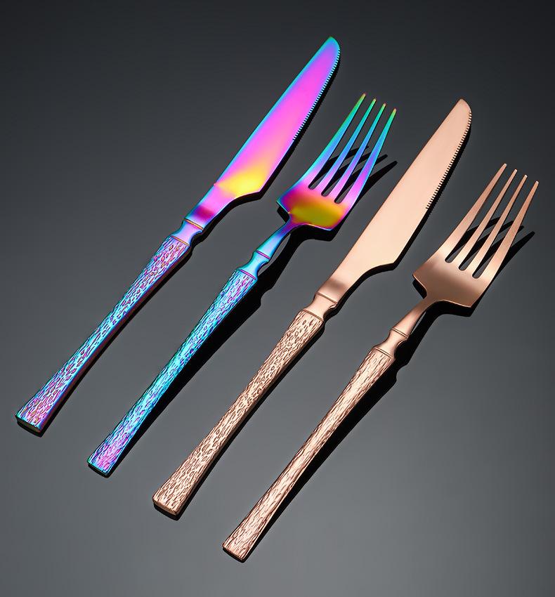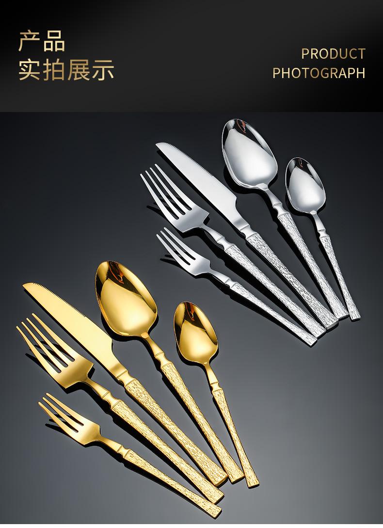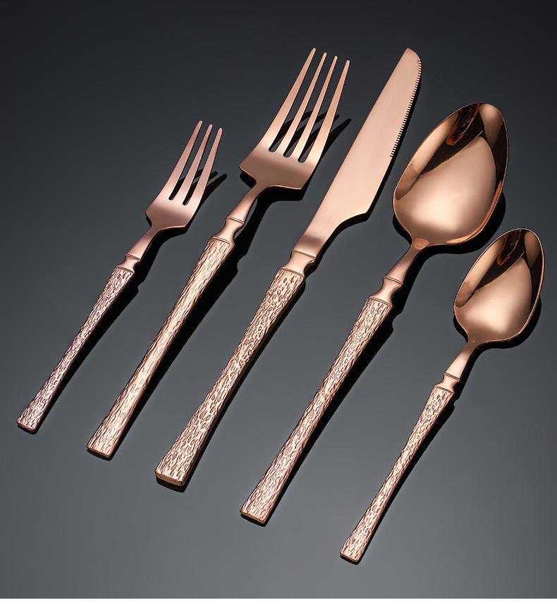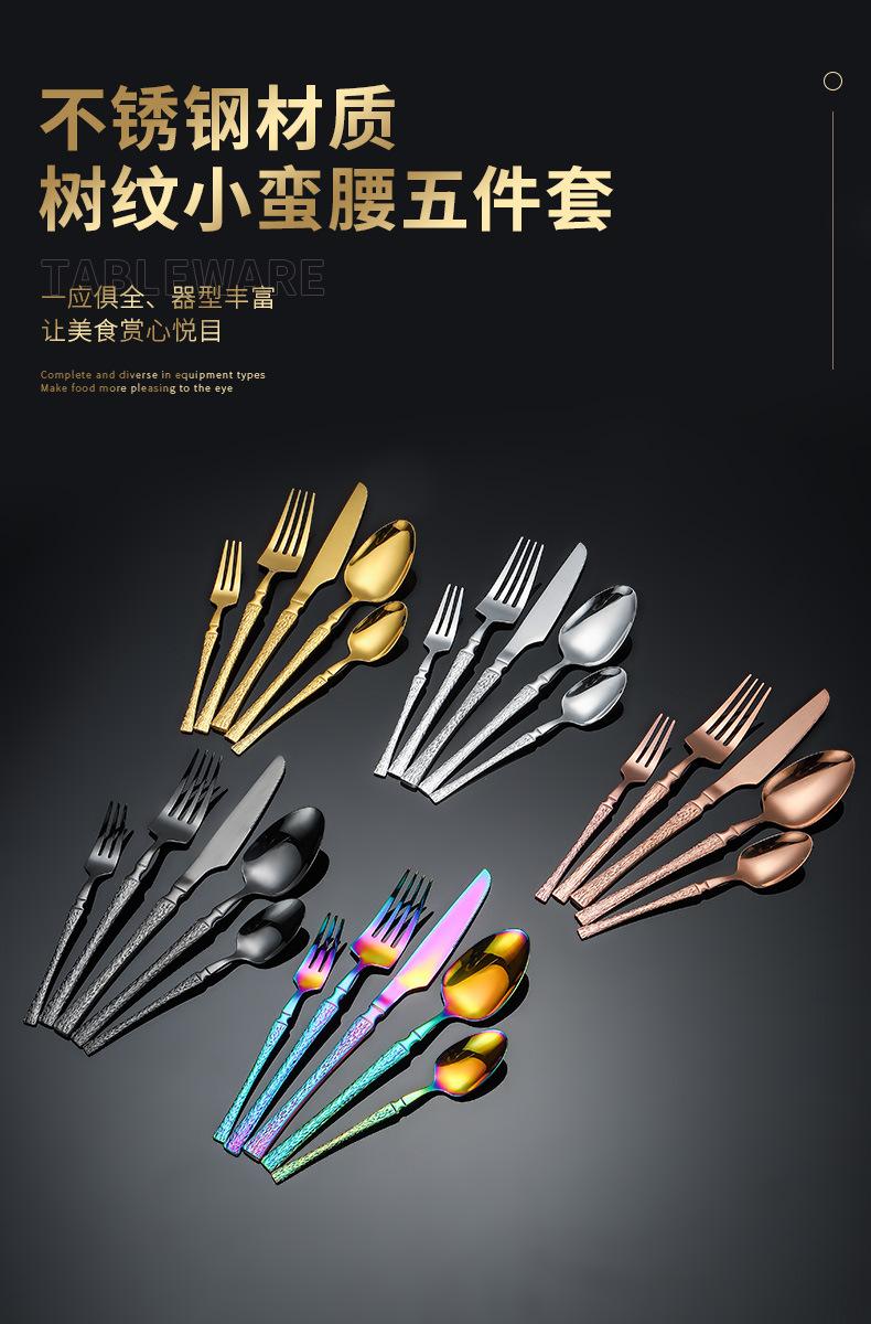 Vajilla de Acero Inoxidable Amazon Vajilla de Cinco Piezas Martillada Serie Cintura de Hombre Pequeño Vajilla Occidental Juego de Cuchillo, Tenedor y Cuchara