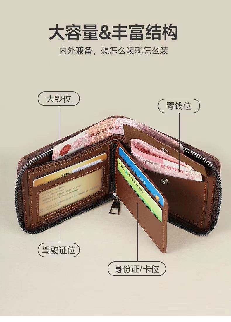 Nueva billetera para hombre multicard con cremallera tarjetero nueva versión coreana corta plegable horizontal fabricantes mayoreo