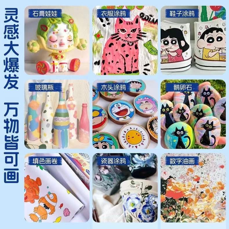 Tira de Pintura Acrílica Lote 12 Colores Arte para Niños Pintura a Mano Pintura sobre Vidrio Pintura Pintado Yeso Muñeca Set para Colorear