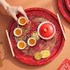 Bandeja de Madera Roja Estilo Chino Rectangular para el Hogar Festiva Bandeja de Té Redonda para Boda Dulces Snacks Fruta