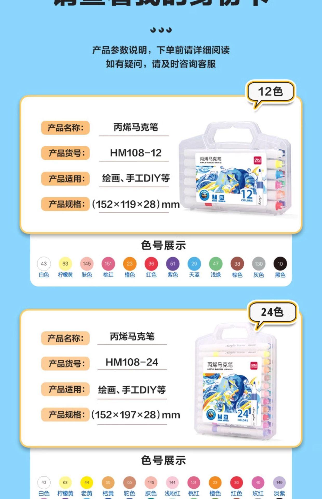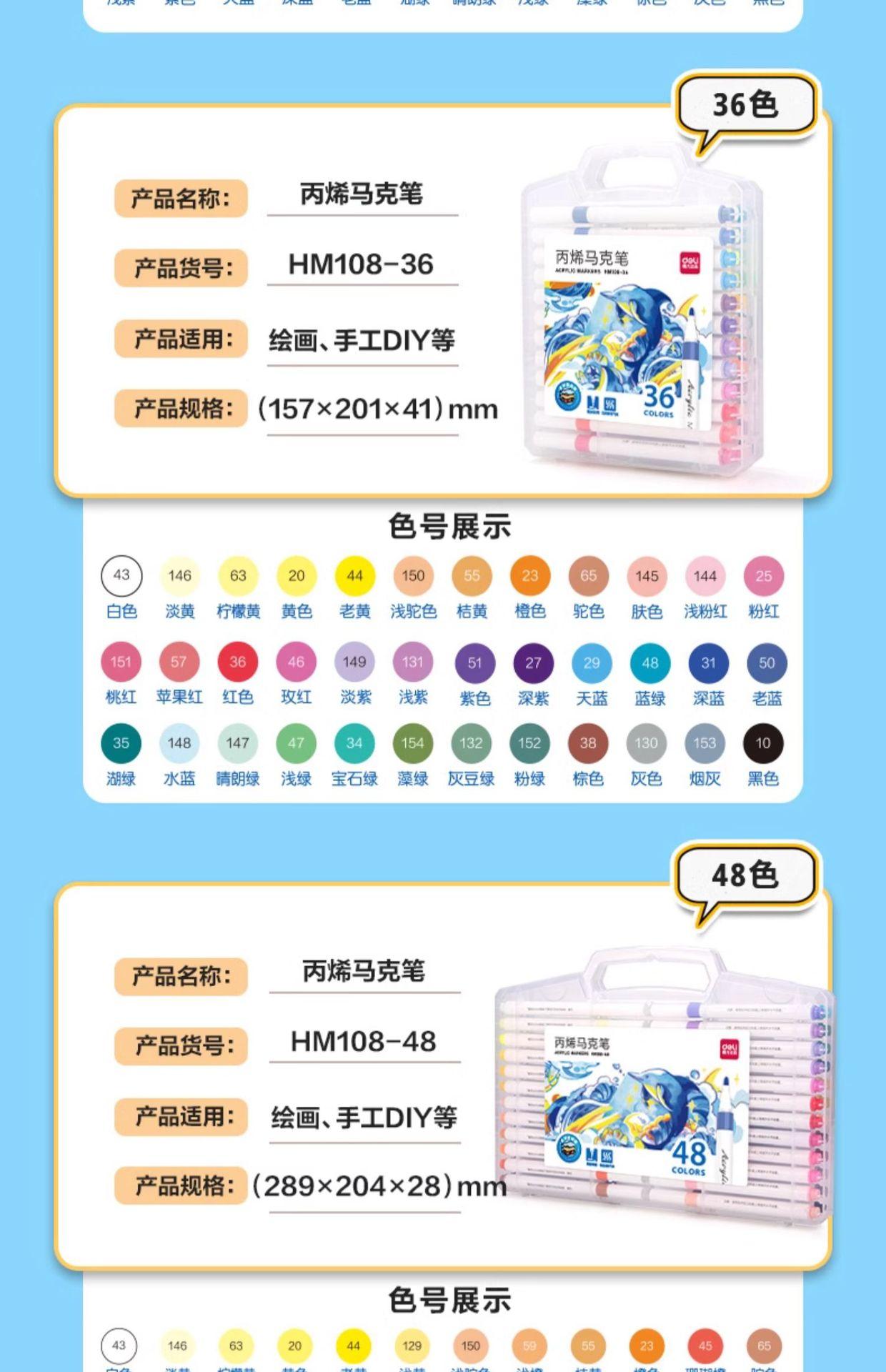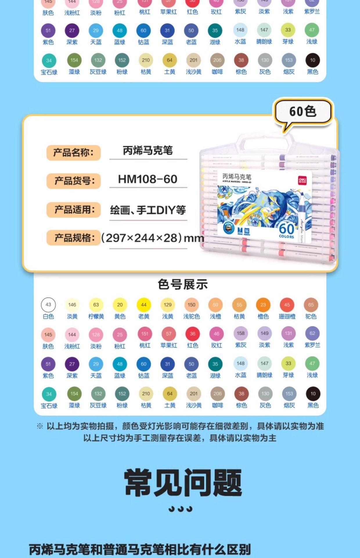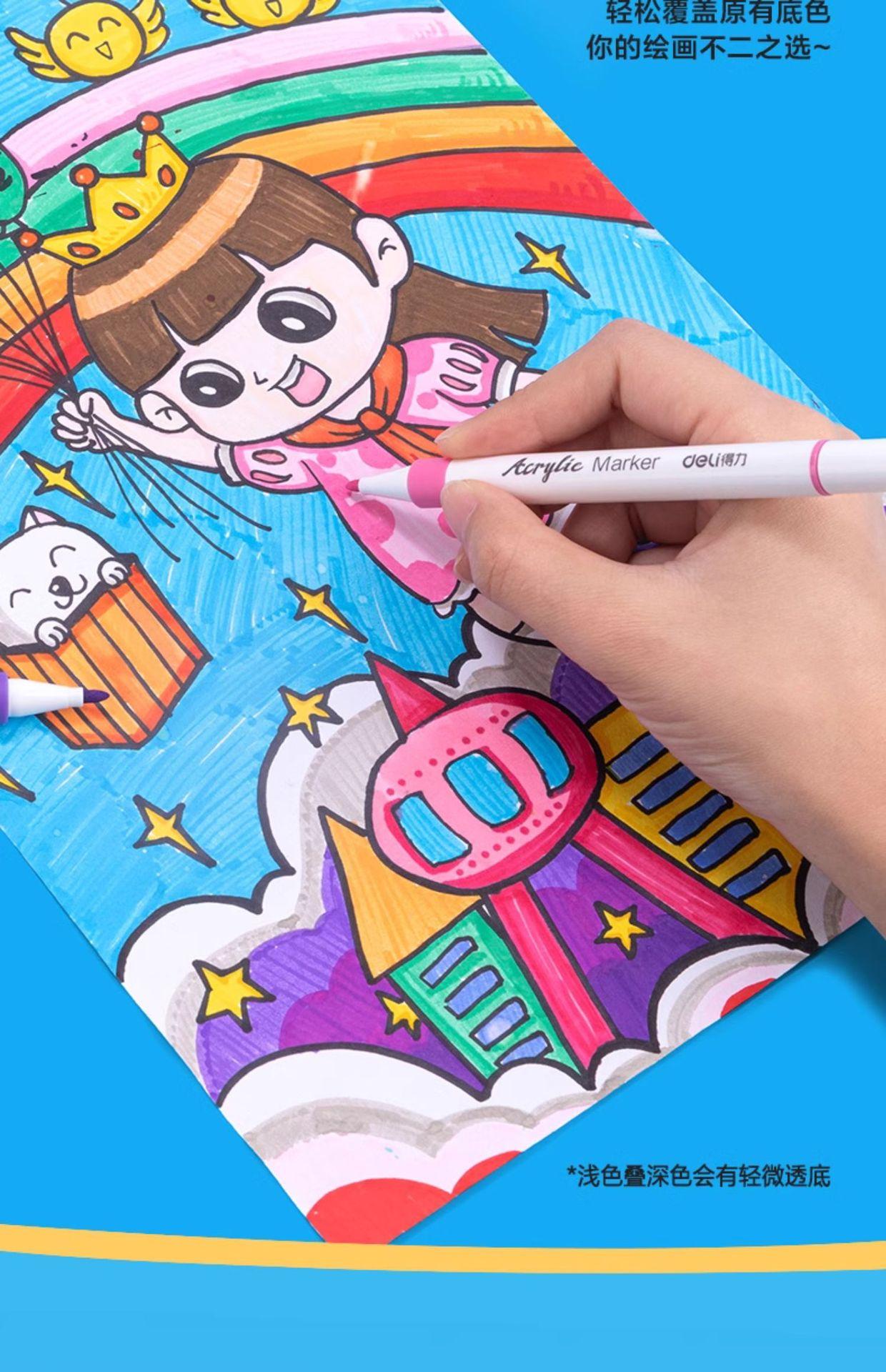 Marcador acrílico Deli impermeable opaco arte infantil especial imagen lavable agua 60 colores pluma acuarela