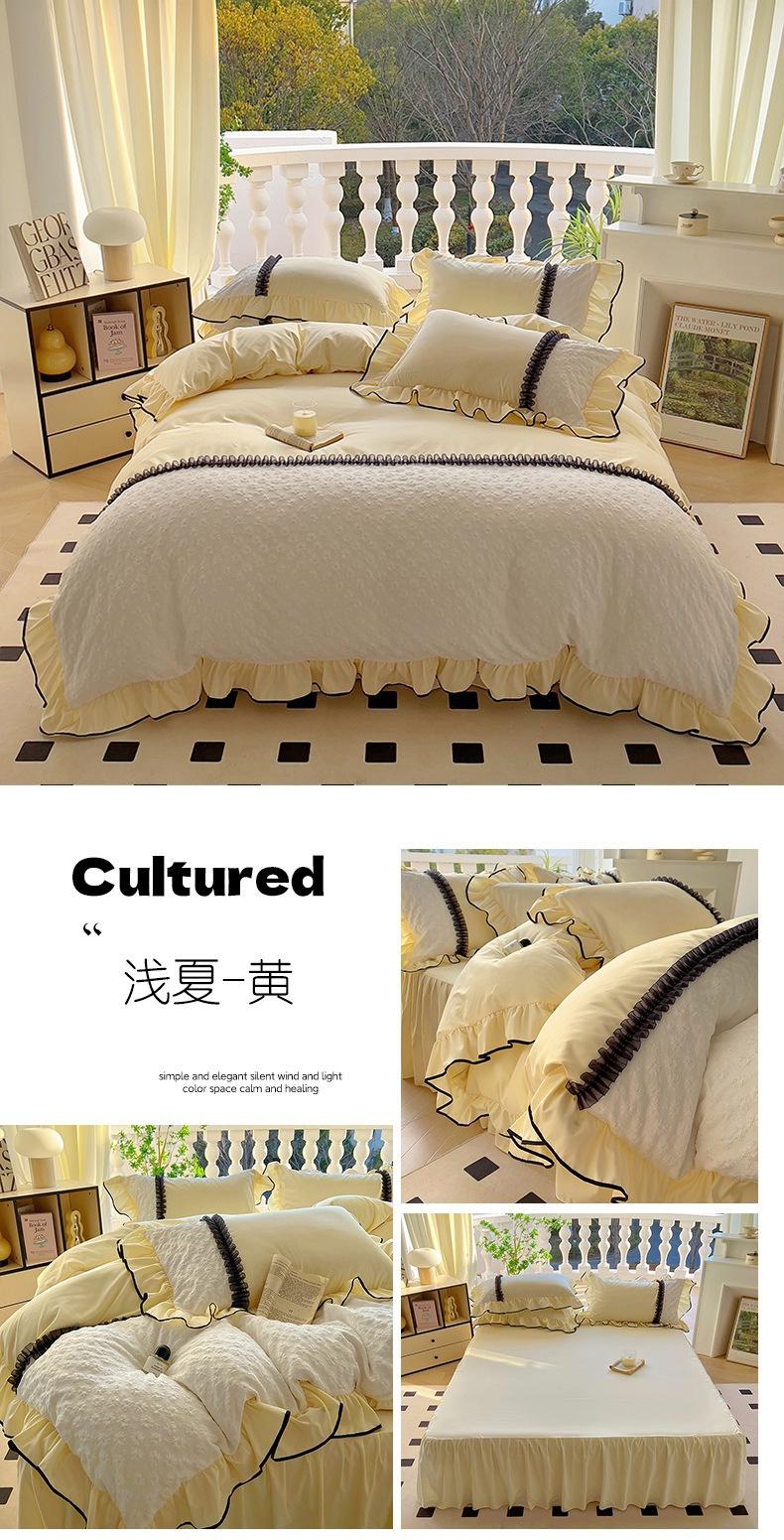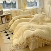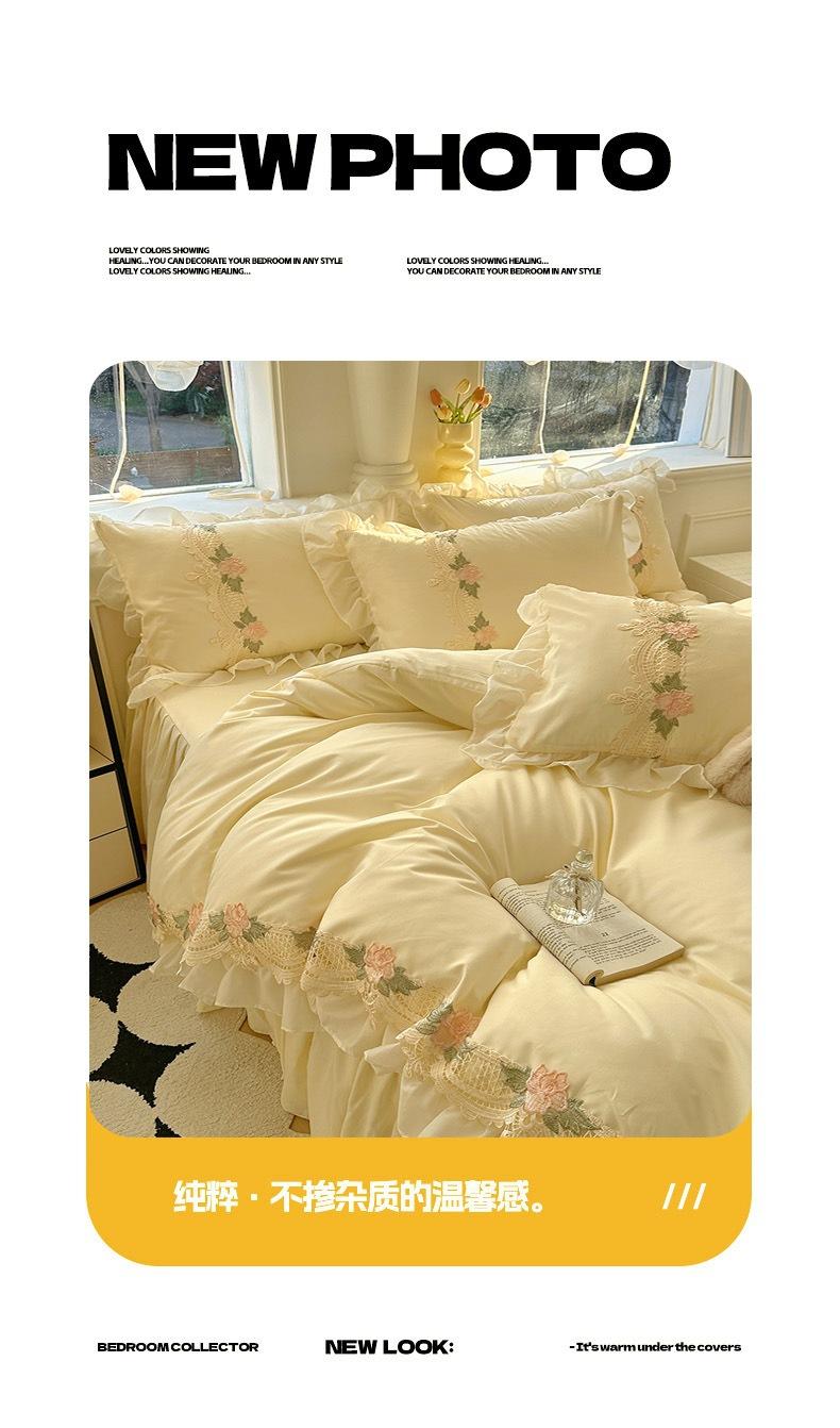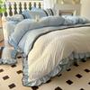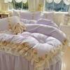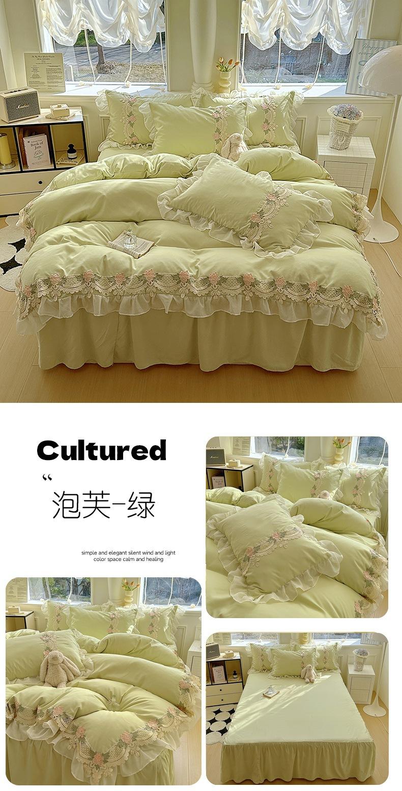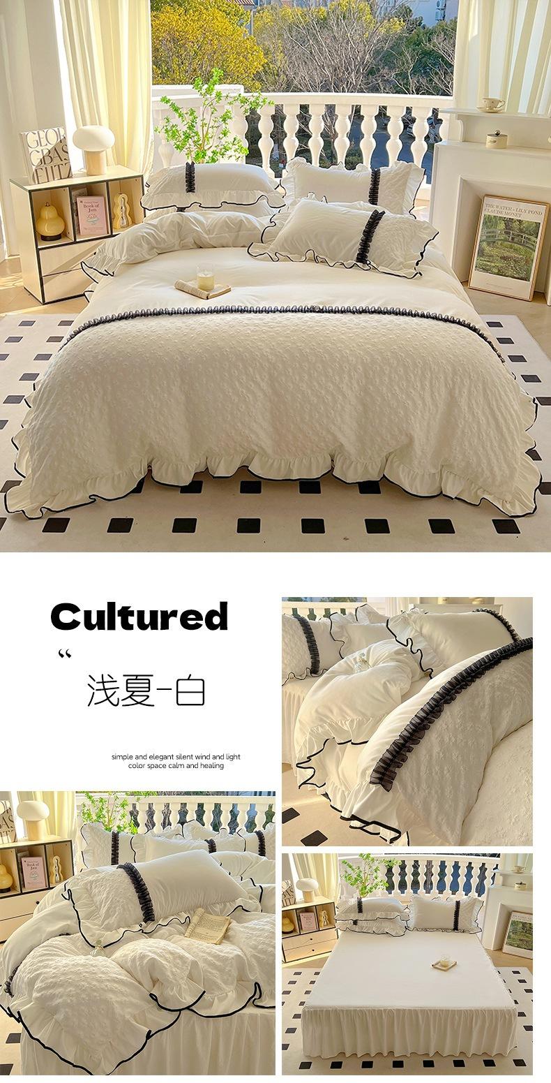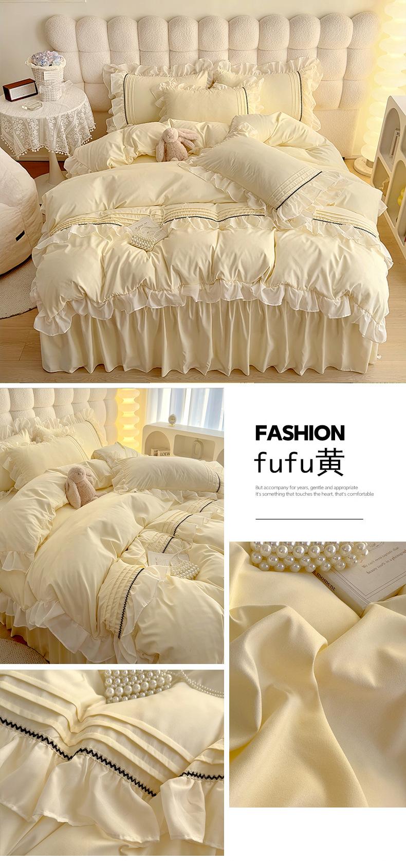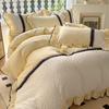 Compra Falda de cama estilo princesa romántica francesa Juego de cuatro piezas Encaje de gasa Hada Crema Color sólido Funda de edredón Sábana al por mayor en Joom.pro