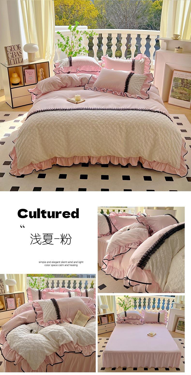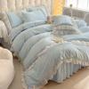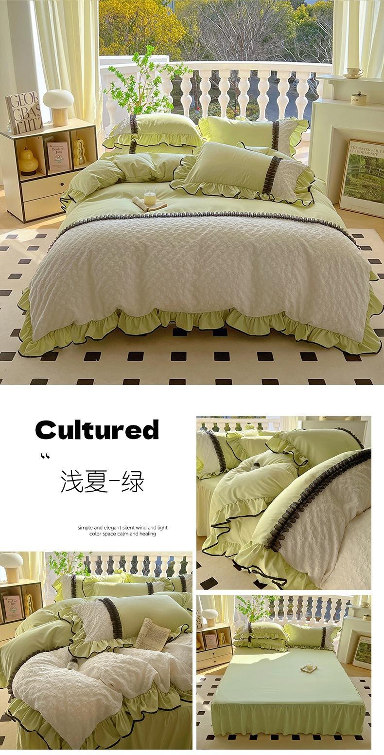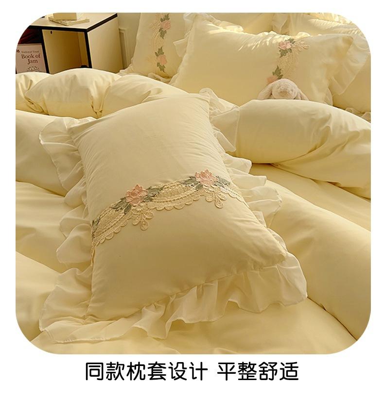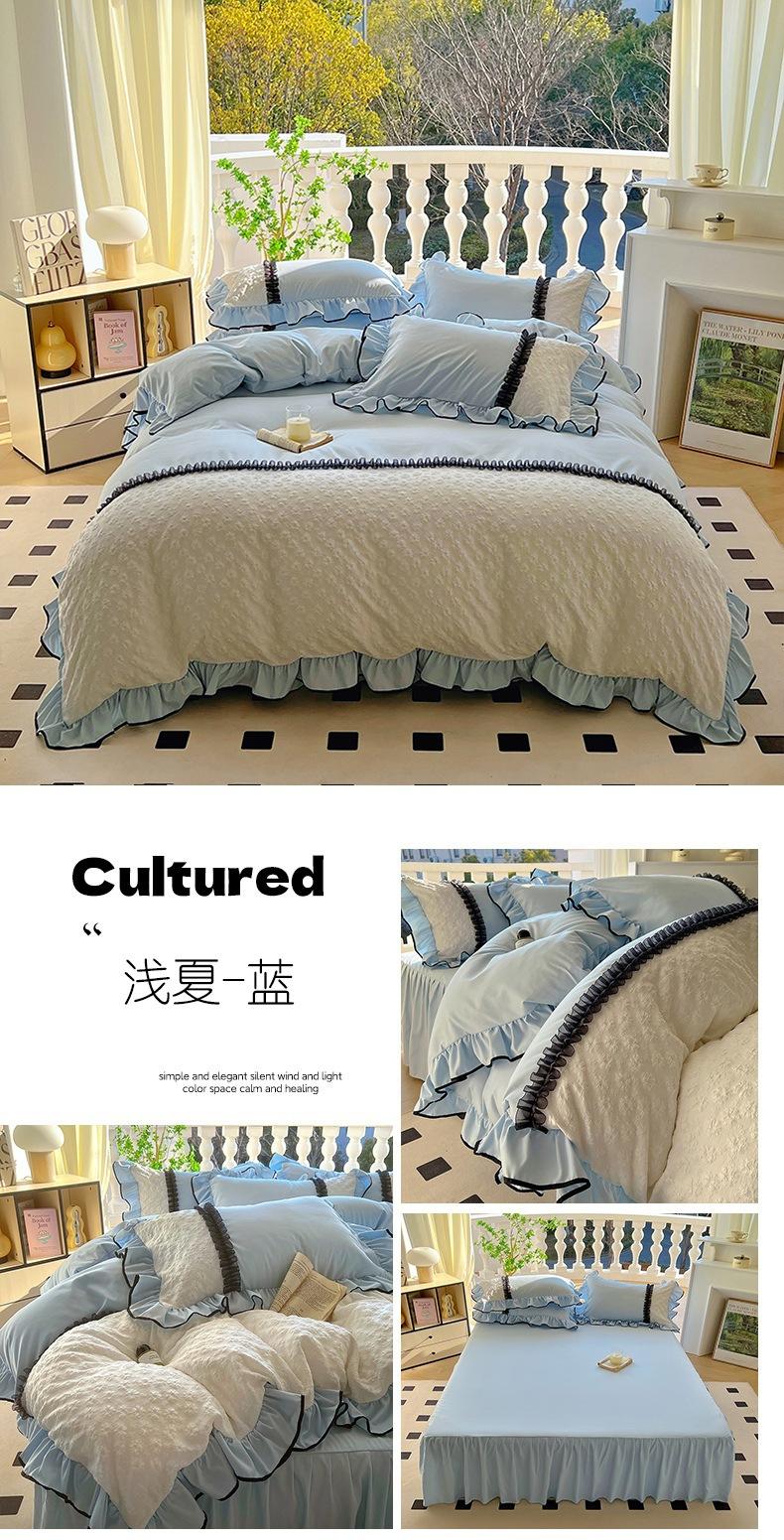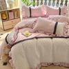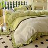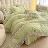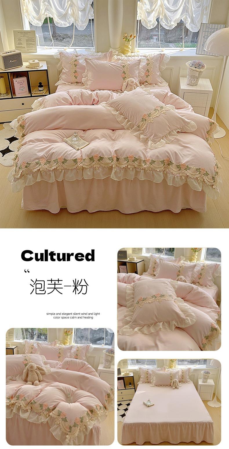 Compra Falda de cama estilo princesa romántica francesa Juego de cuatro piezas Encaje de gasa Hada Crema Color sólido Funda de edredón Sábana al por mayor en Joom.pro