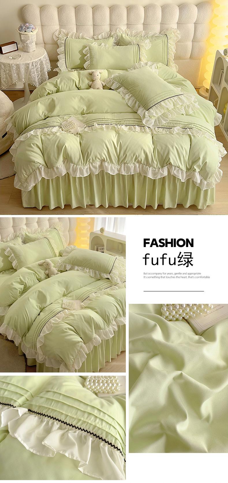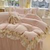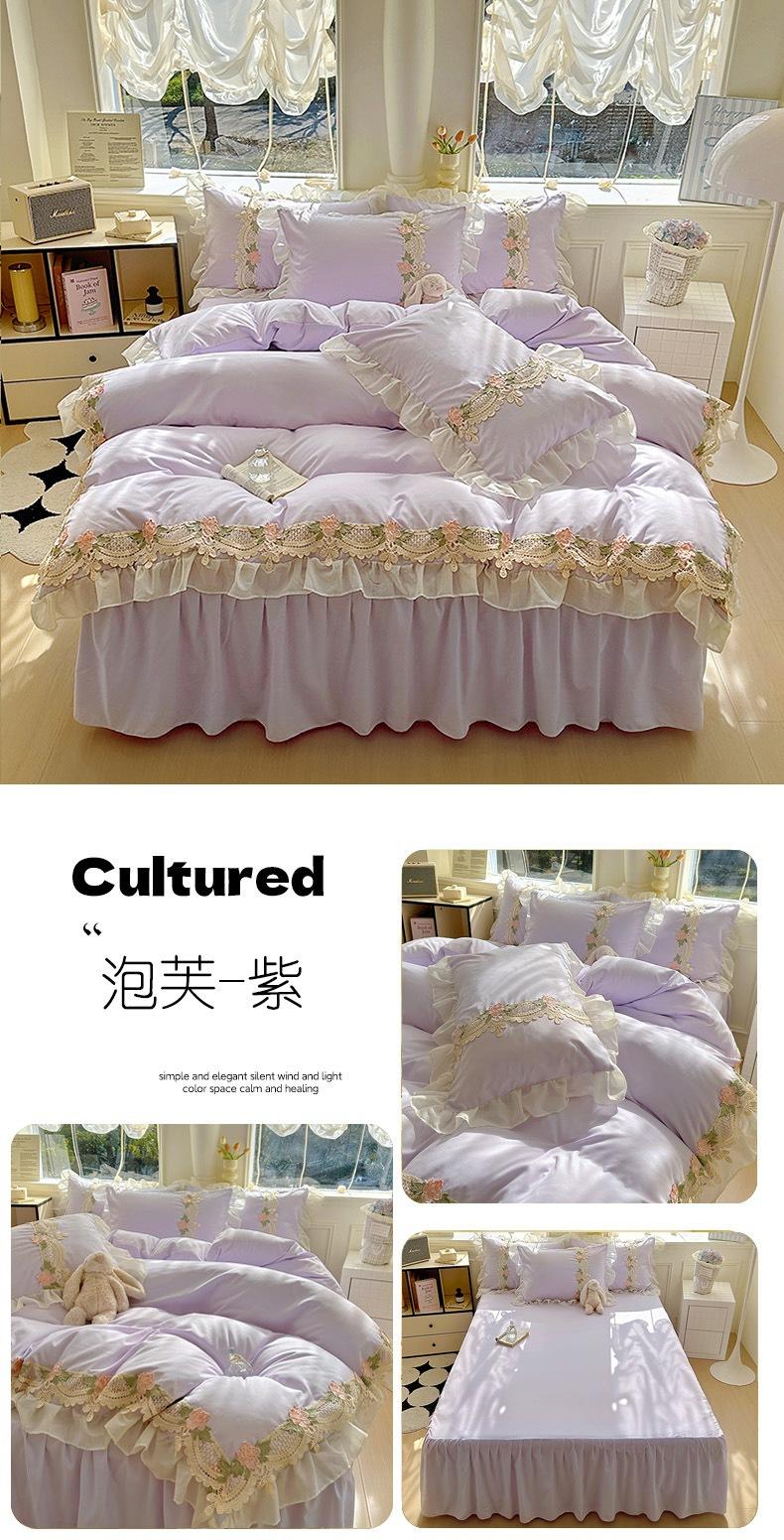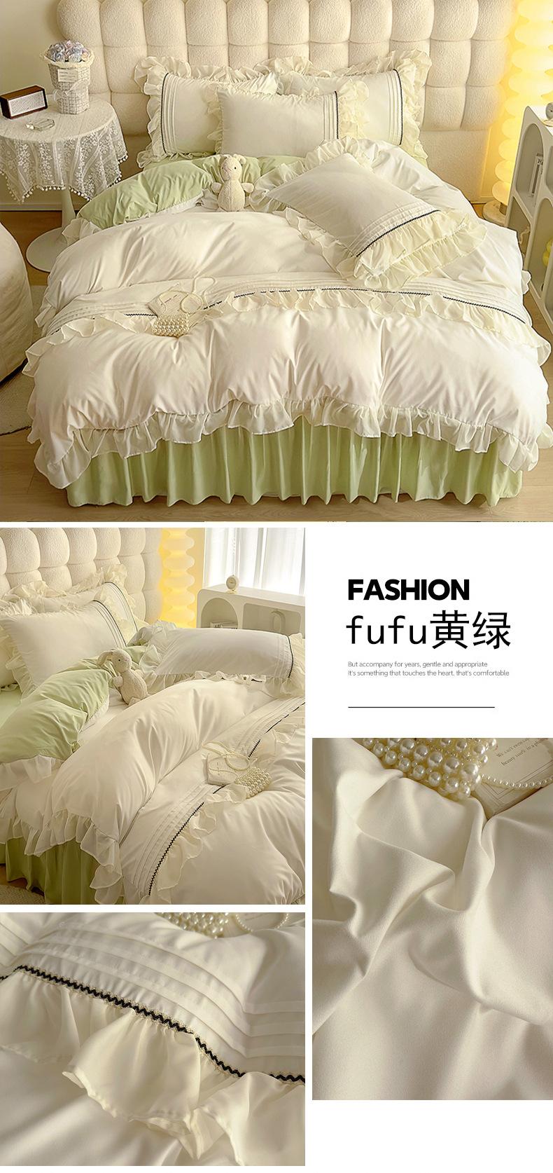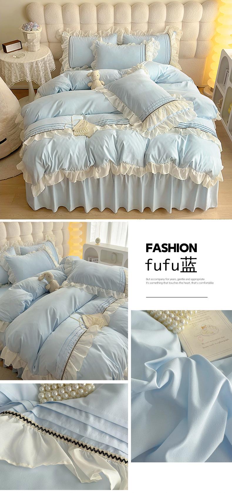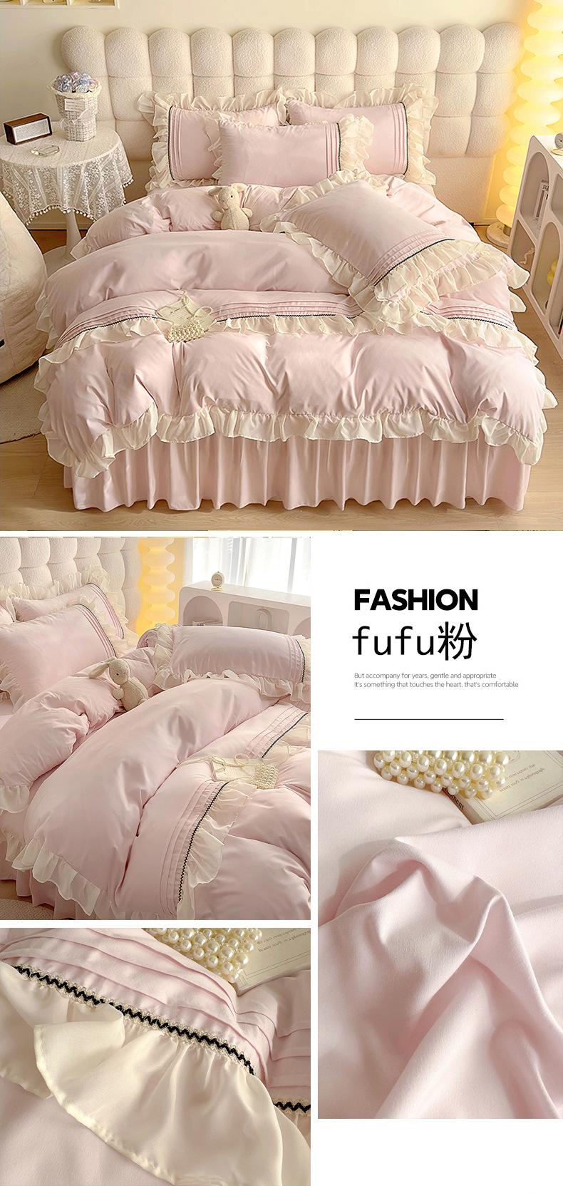Compra Falda de cama estilo princesa romántica francesa Juego de cuatro piezas Encaje de gasa Hada Crema Color sólido Funda de edredón Sábana al por mayor en Joom.pro