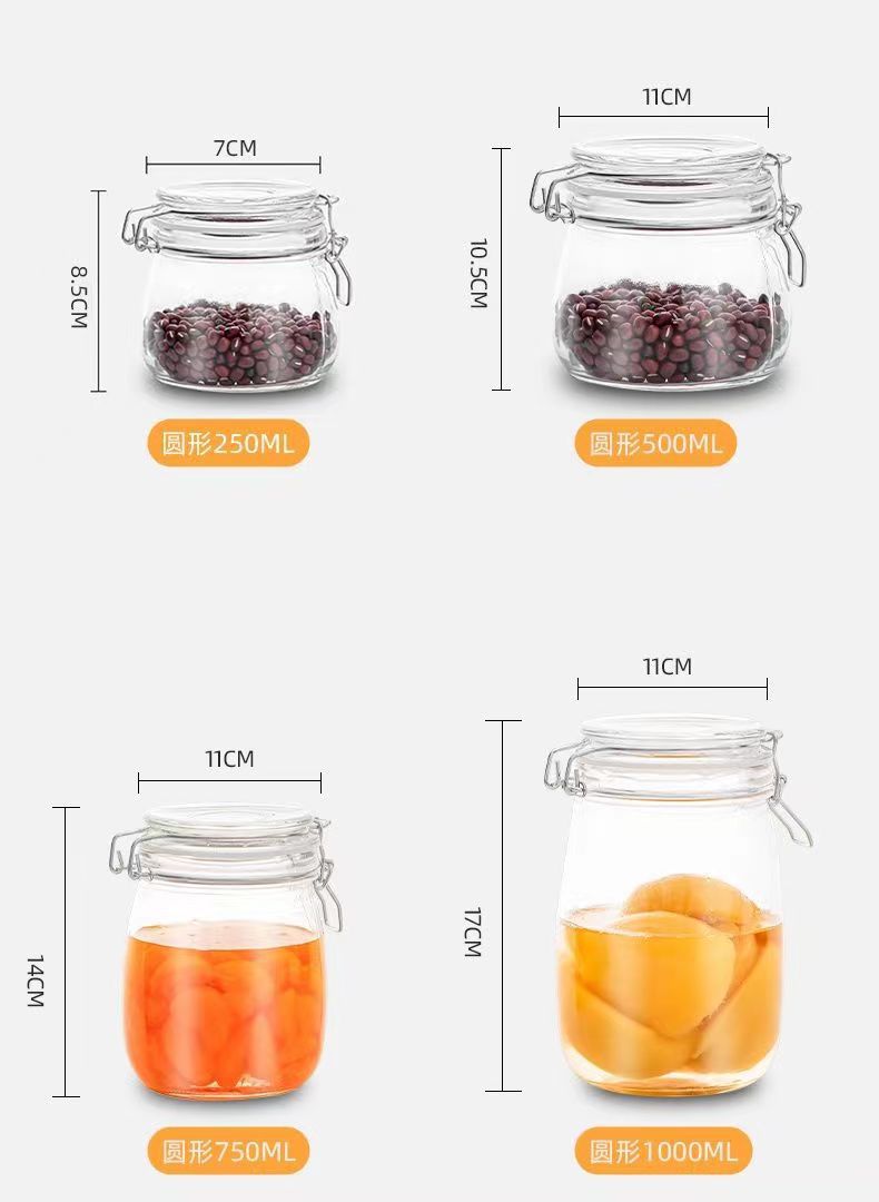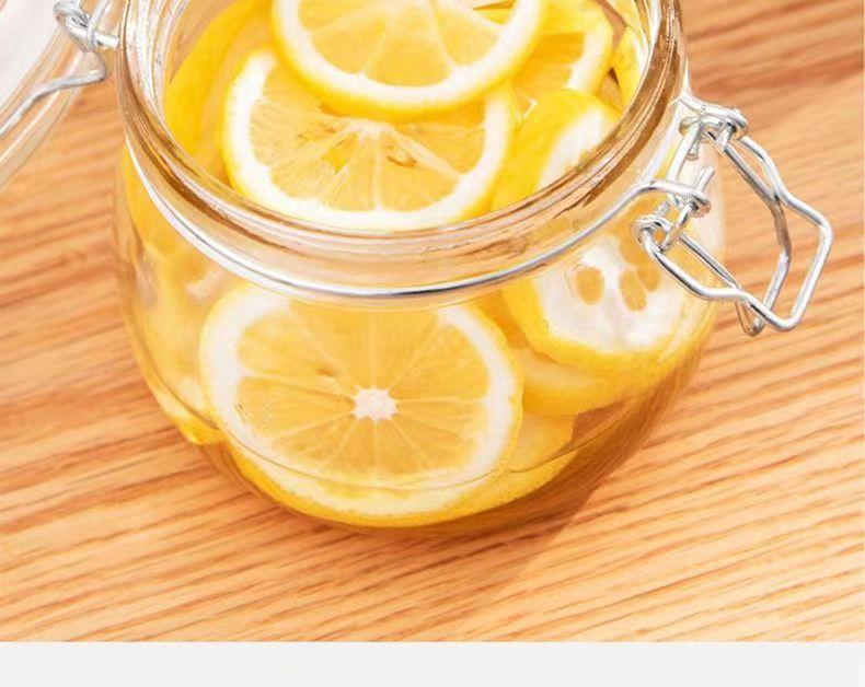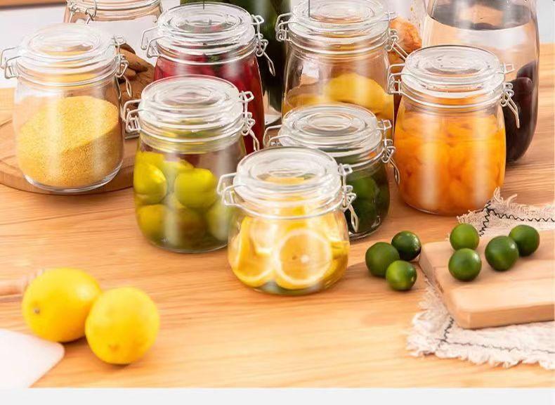 En stock, venta al por mayor, frasco de almacenamiento de vidrio con hebilla, frasco de vidrio sellado, almacenamiento con hebilla transparente, frasco de té a prueba de humedad, botella de miel
