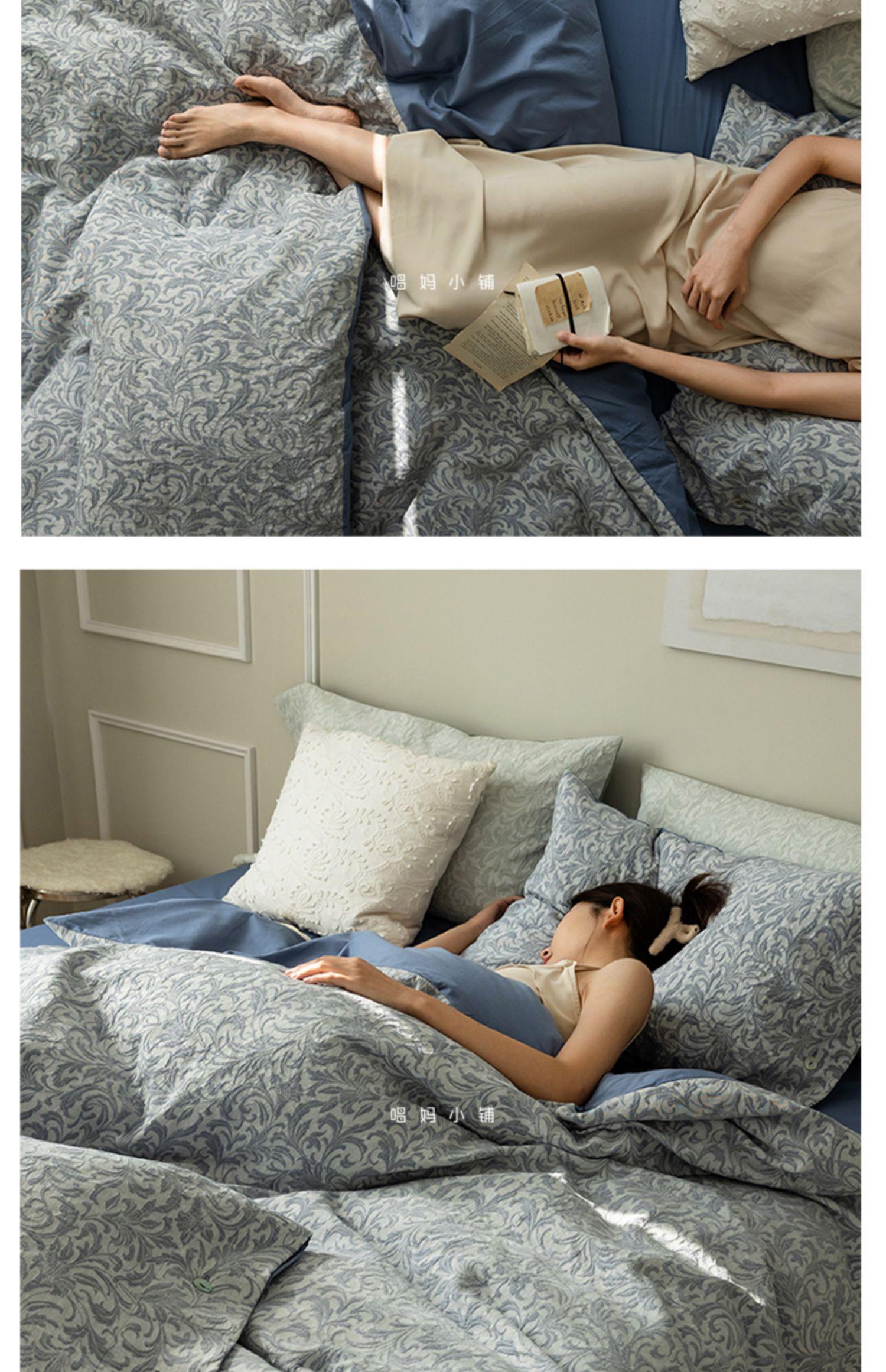 Nuevo Estilo Nórdico Retro Algodón Lavado Juego de Cama de Cuatro Piezas Sábanas de Algodón Puro Ropa de Cama Sensación de Lujo Ligero