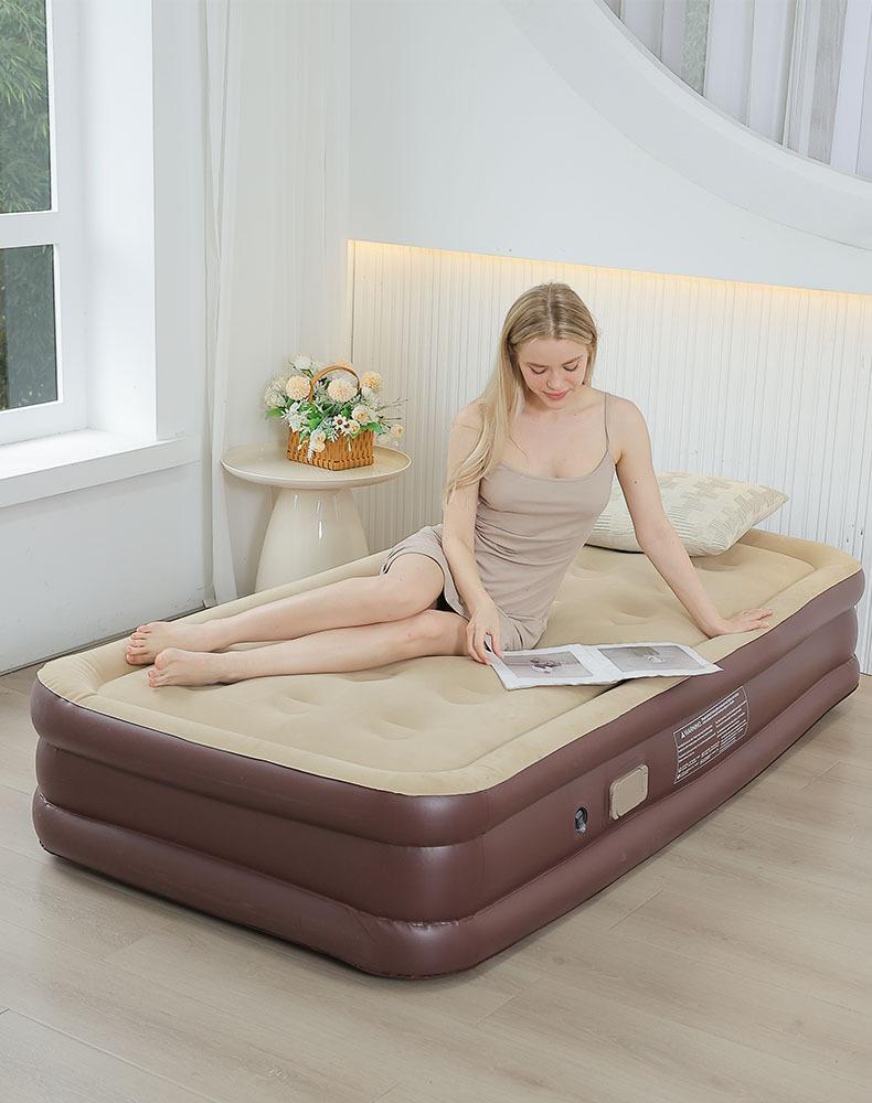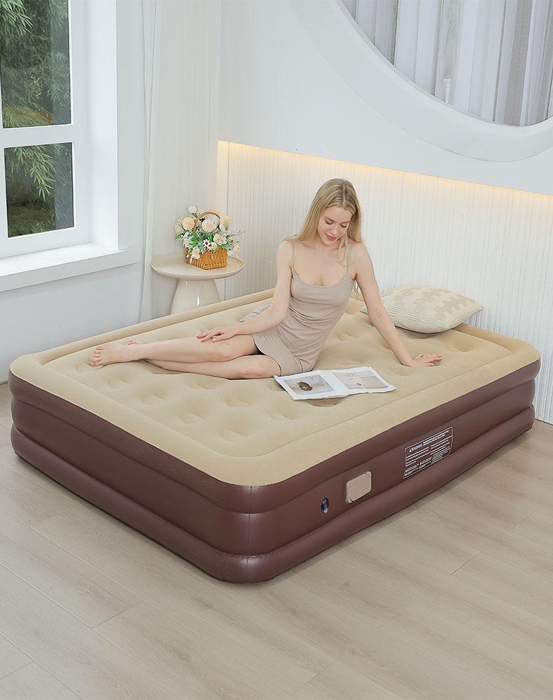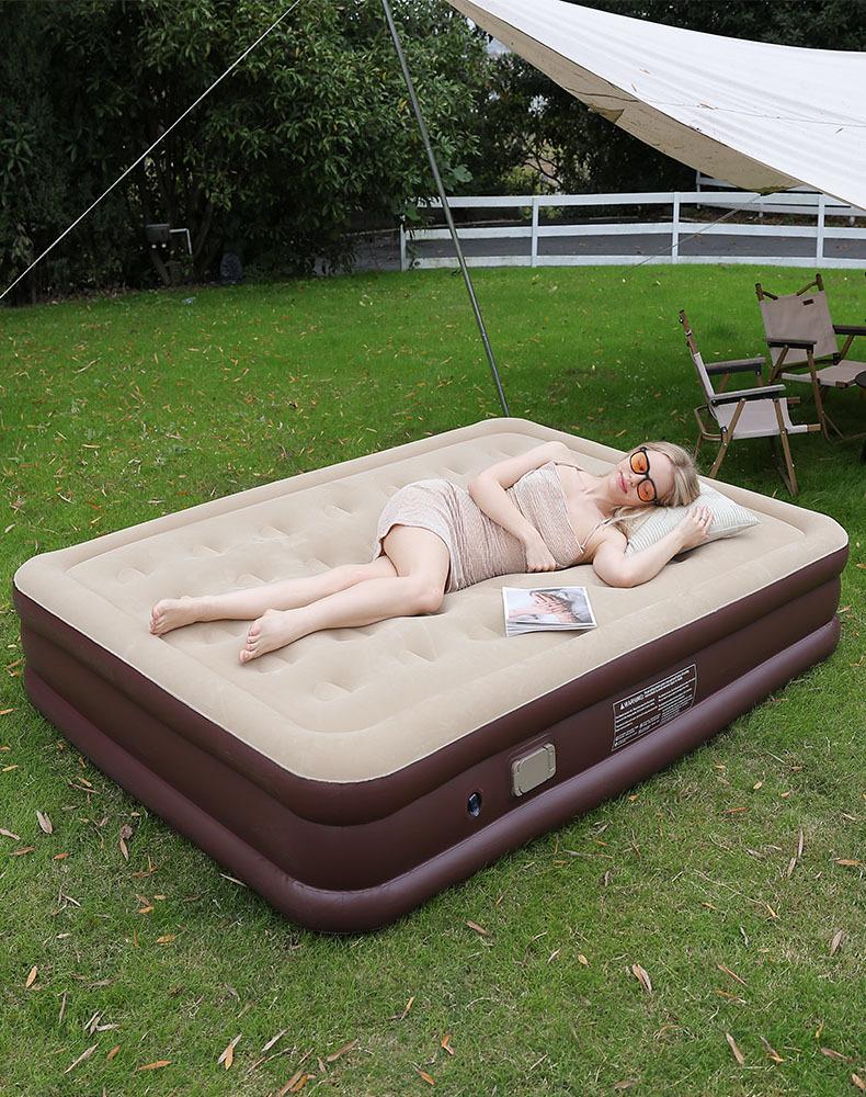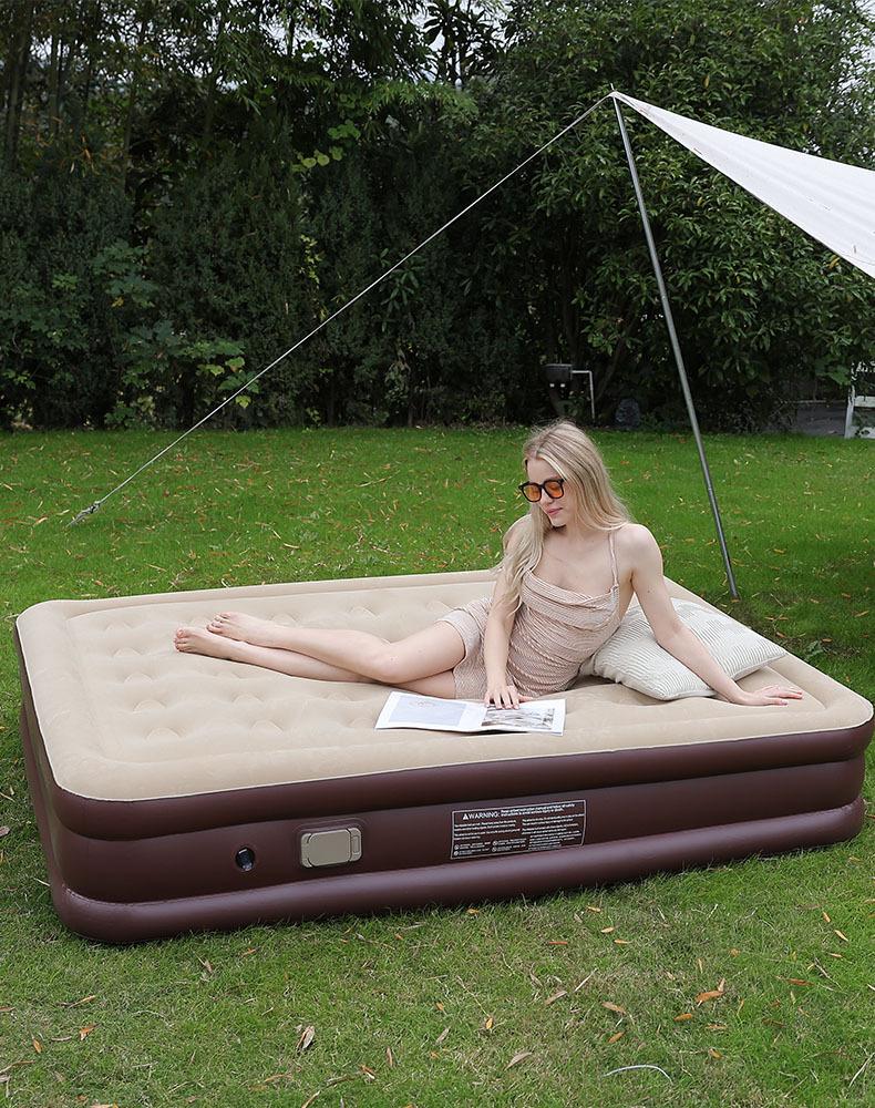 Colchón inflable para exteriores con flocado de PVC, bomba incorporada, individual, doble y automático, para uso transfronterizo.