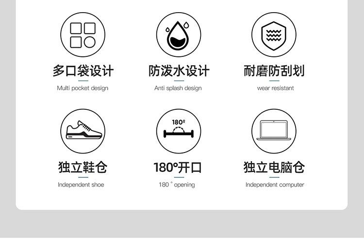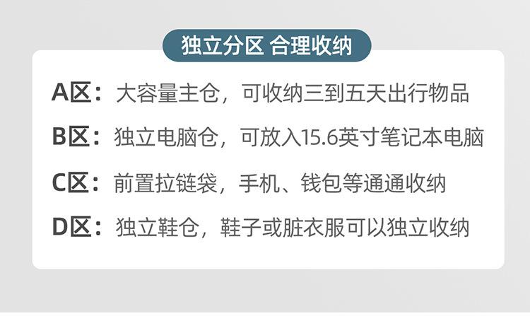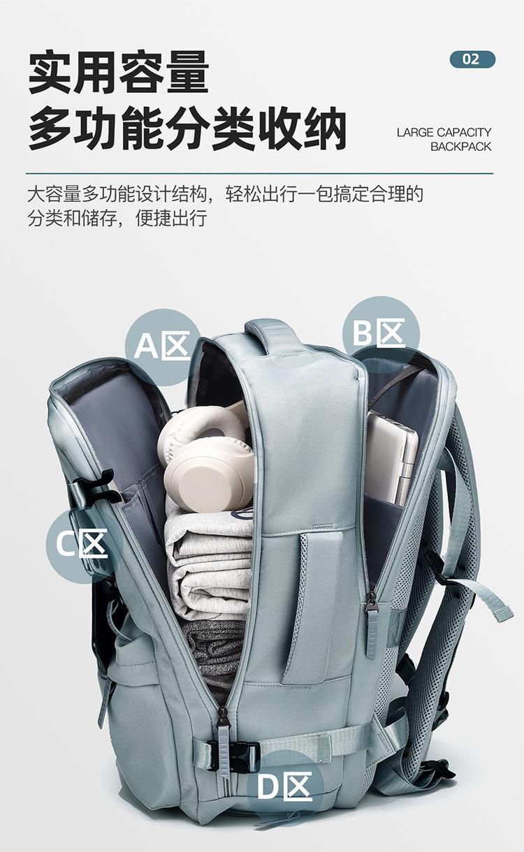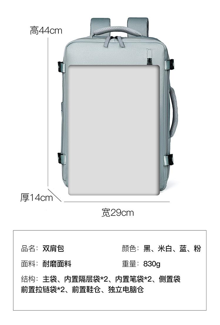 Black, Off-white, Light green, Light purple, Purple with wet and dry separation belt, shoe compartment and usb...