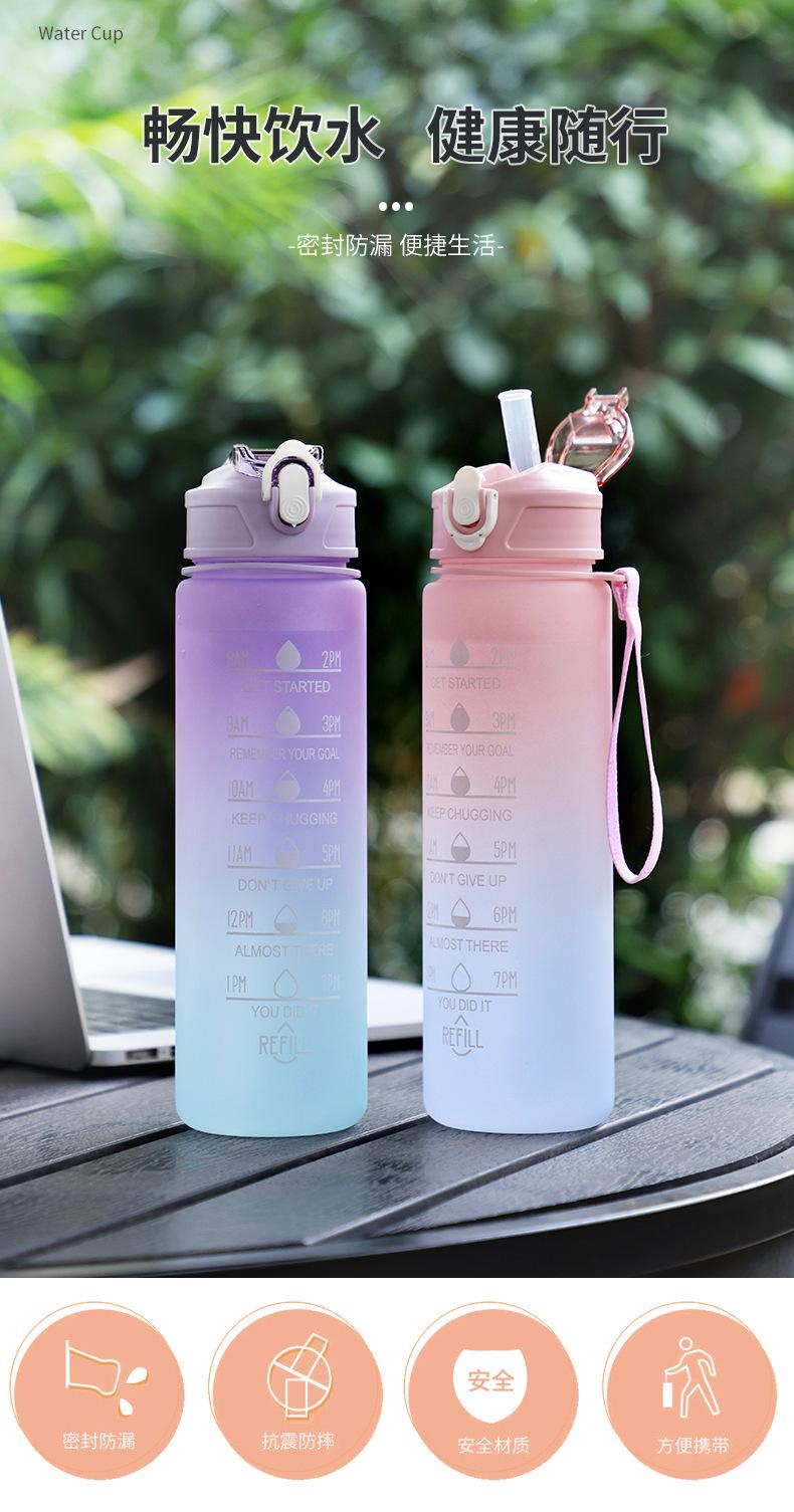 Vaso de Agua de Color Degradado, Vaso Espacial Simple con Cuerda, Vaso con Pajita y Escala para Estudiantes, Botella Deportiva, Botella de Agua para Niños