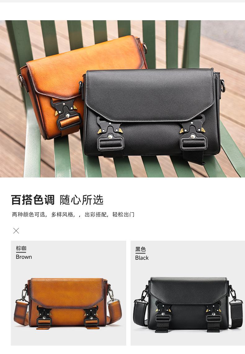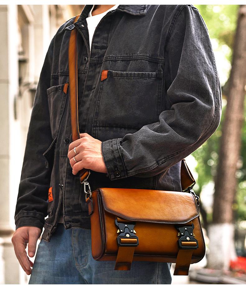 Nueva bolsa de pecho para hombre transfronteriza, cuero retro de caballo loco, pequeña bandolera de alta gama, diseño de hebilla de inserción, bolso de hombro de moda al por mayor