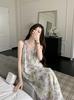 Vestido de Tirantes Estampado de Acetato Francés de Alta Gama Europeo, Estilo Femenino, Elegante Elegante, Falda Larga con Aspecto Adelgazante, Estilo Occidental