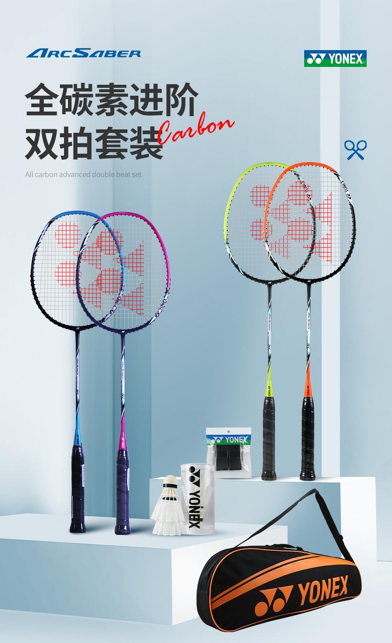 Hot-selling model》ultra-light double racket arc5i sapphire blue + ruby red (comes with yonex large bag + ball + hand glue) + finished racket