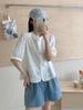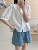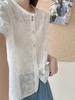 Ropa de Verano 2025, Camisas de Algodón Bordadas Frescas Pequeñas Holgadas de Manga Corta para Mujer, Tops Cárdigan Casuales