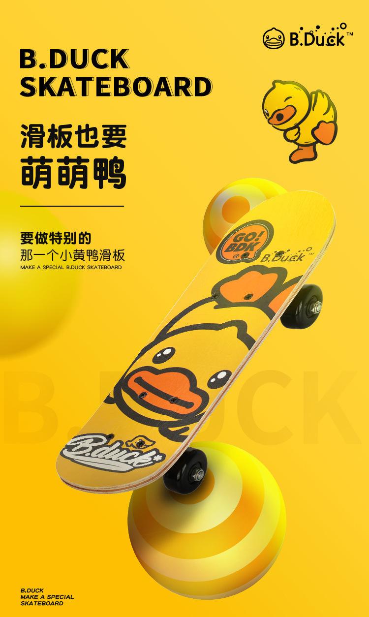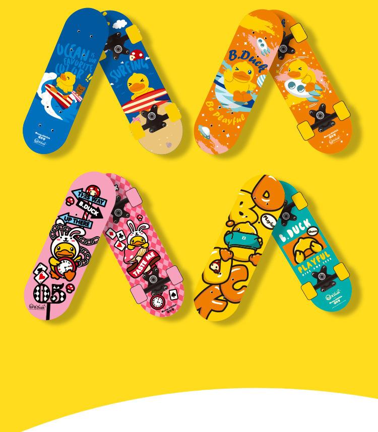 B.Duck Patito Amarillo Patineta Niños y Niñas Principiantes Cuatro Ruedas Exterior Doble Cóncavo Dibujos Animados Mini Scooter de Juguete