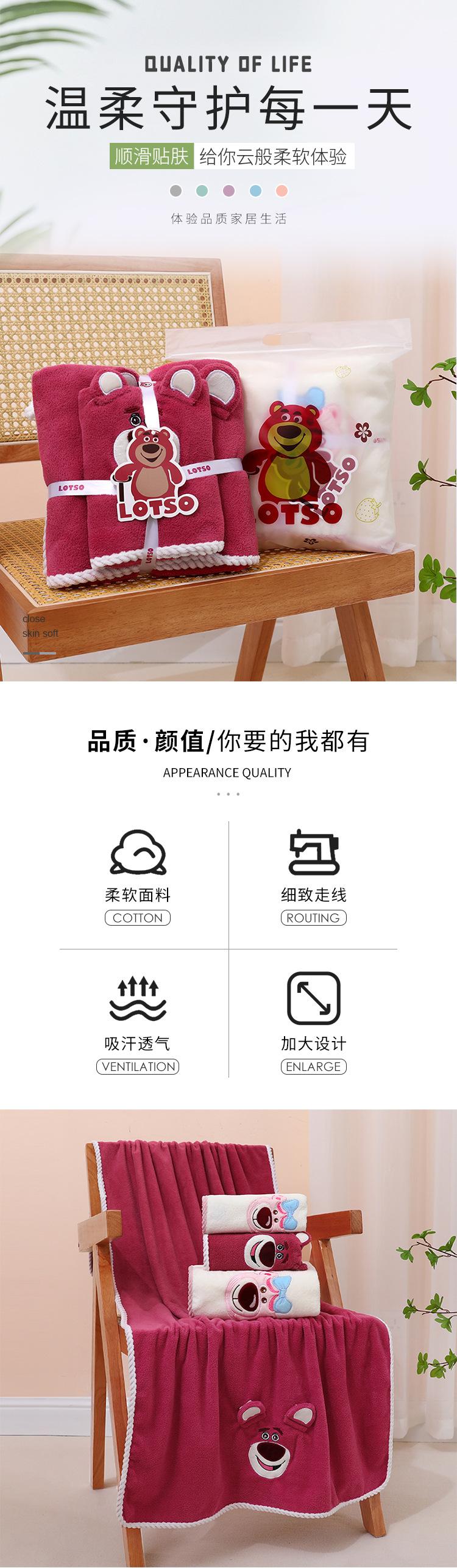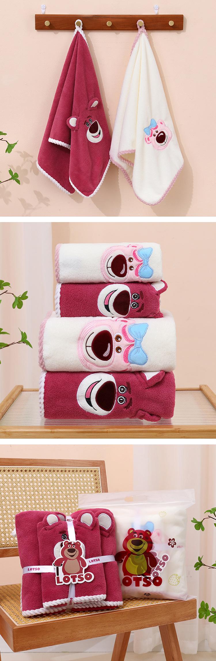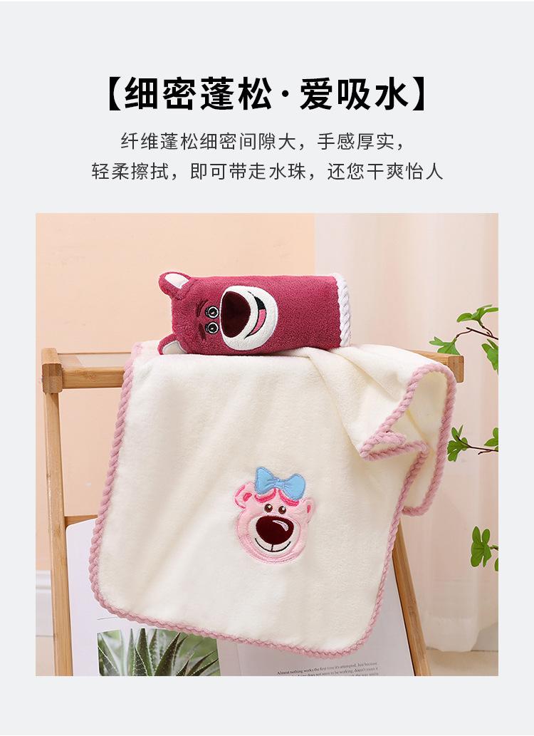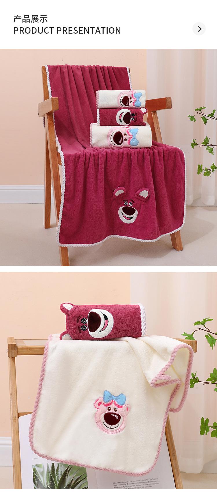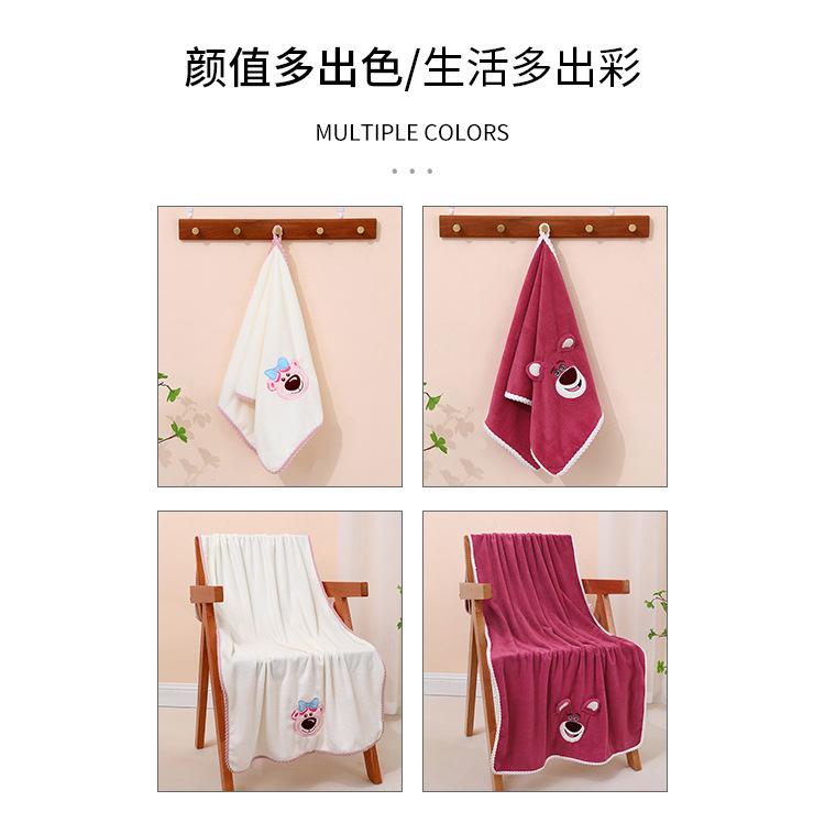 Toalla de oso fresa al por mayor de vellón coral engrosado absorbente de secado rápido toalla de baño con bordado de dibujos animados para niños regalo de mano