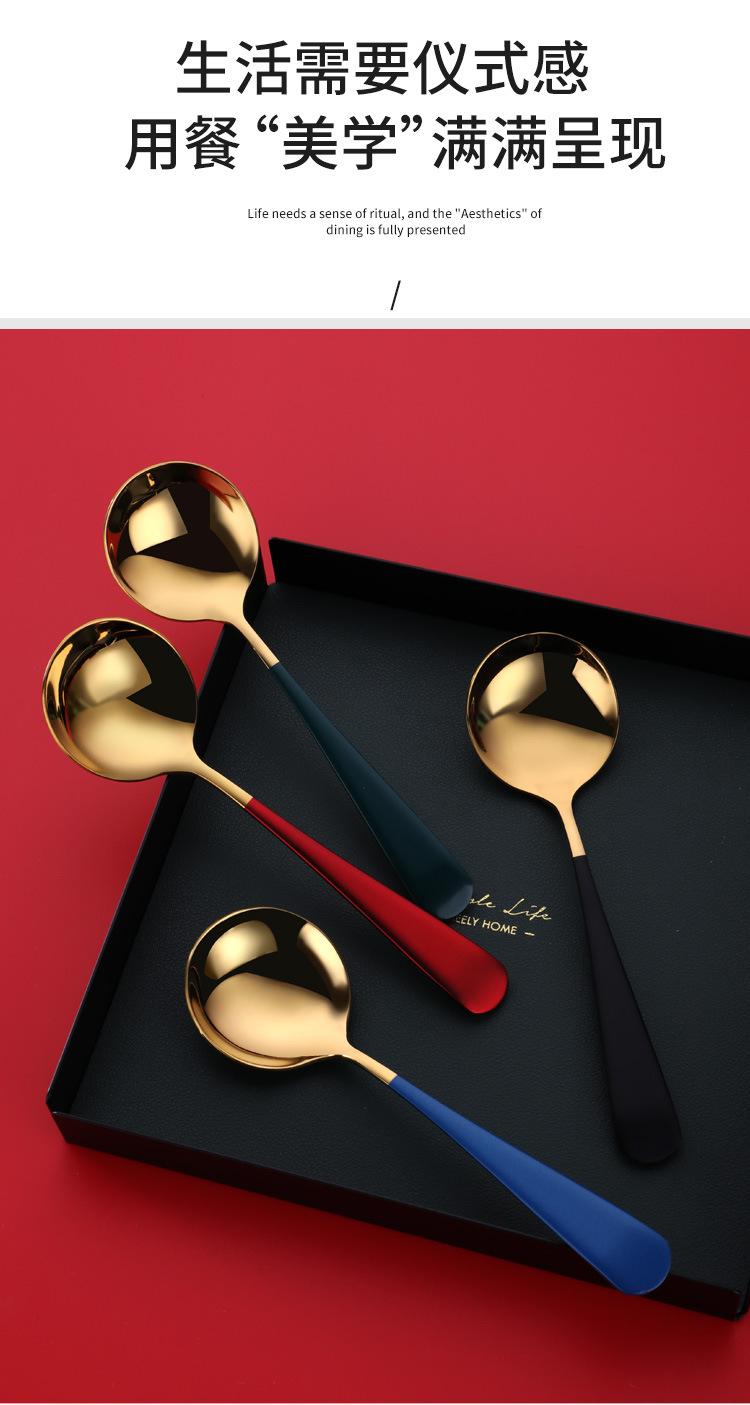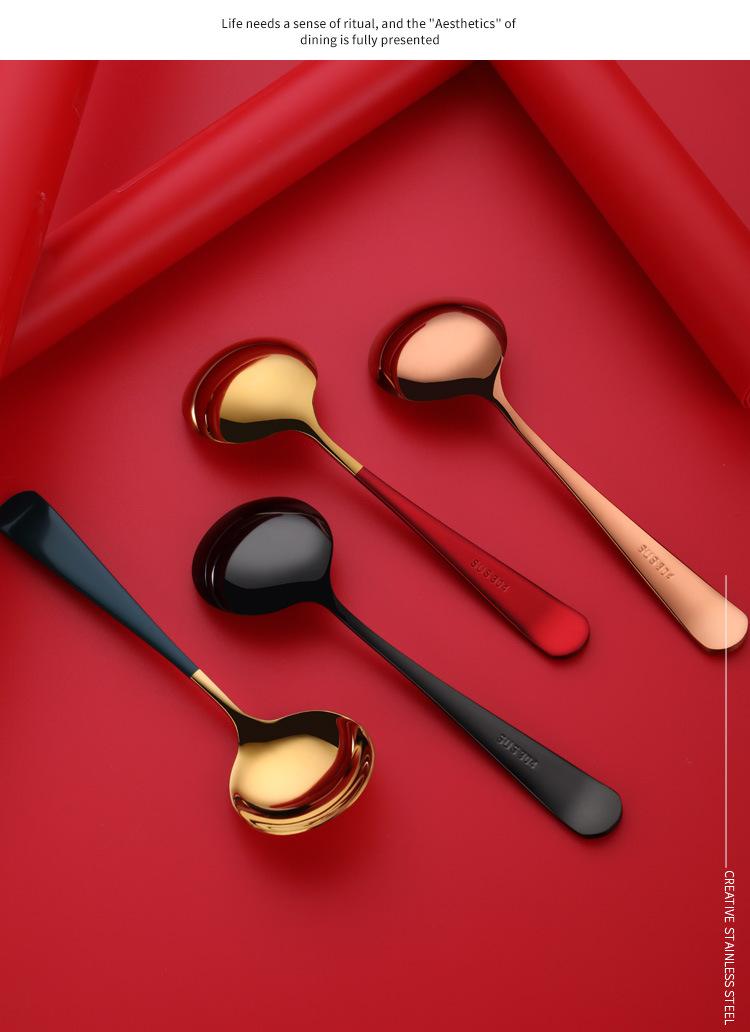 Cuchara Roja de Red Estilo Nórdico al por Mayor Cuchara para Sopa Profundizada y Engrosada Cuchara de Postre Creativa de Cabeza Redonda Cuchara Doméstica de Acero Inoxidable 304