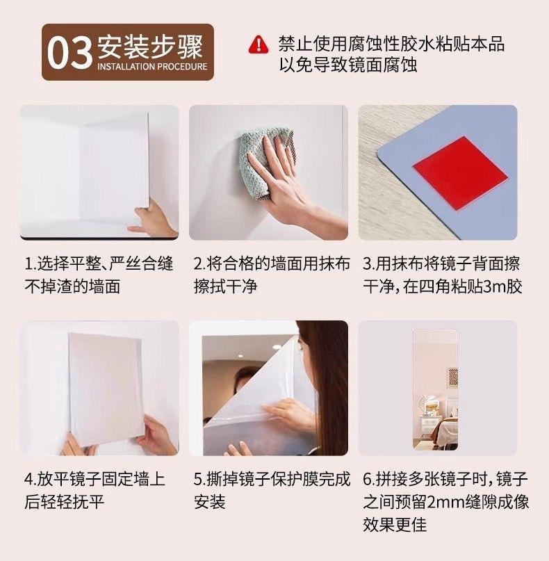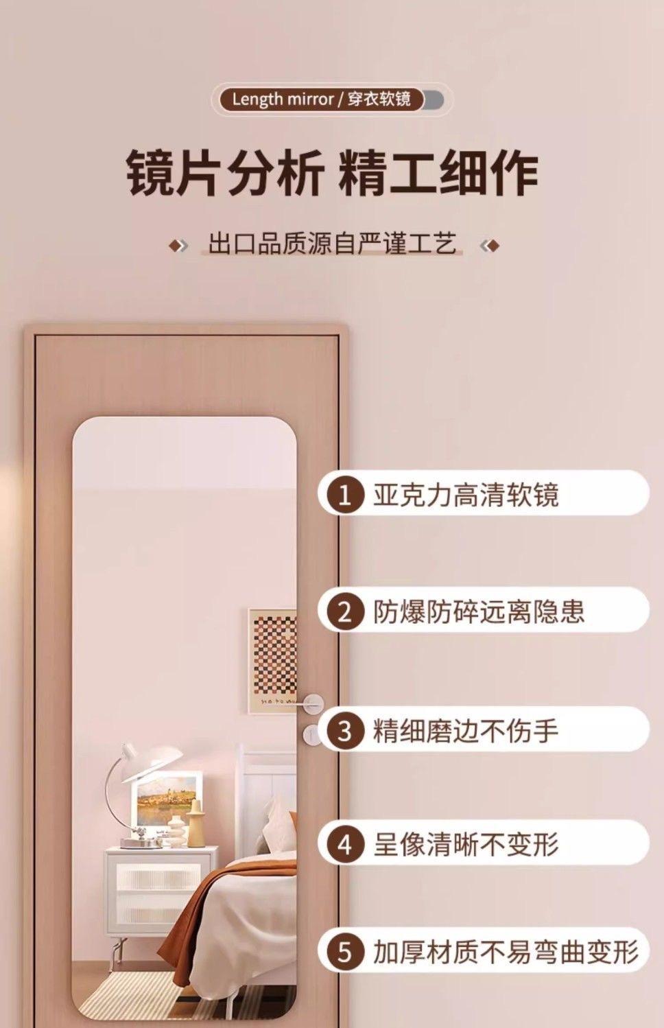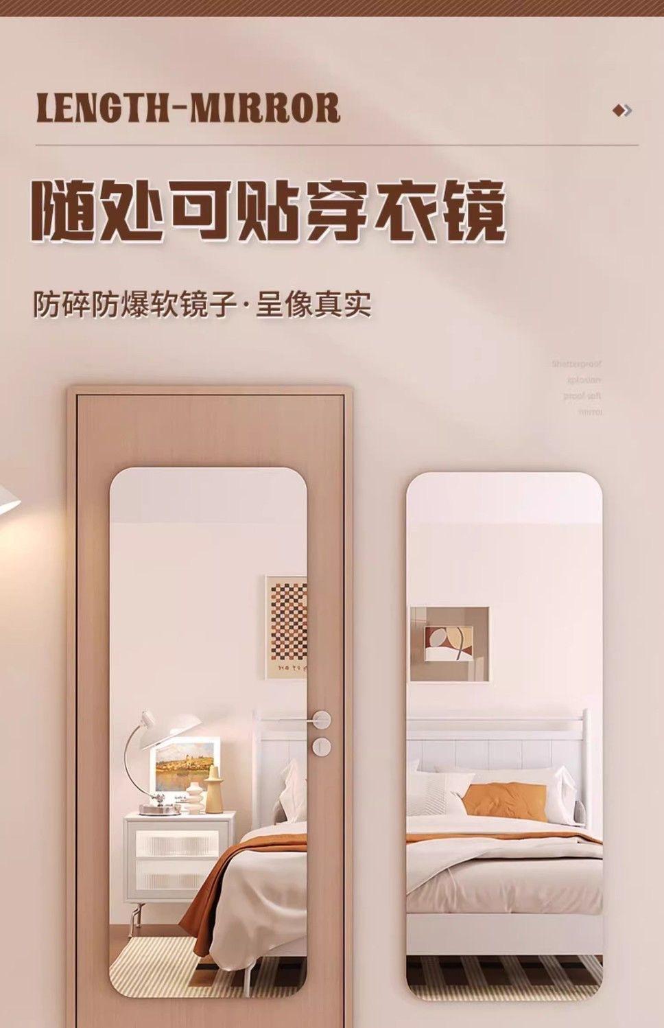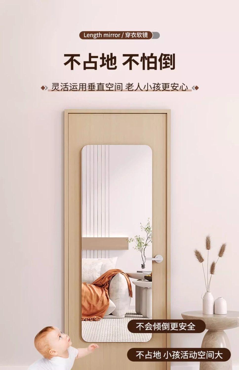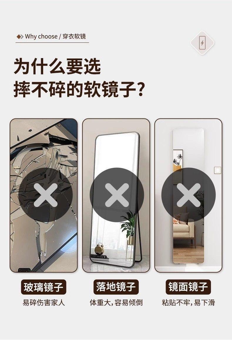 Espejo Acrílico de Baño Montado en la Pared Autoadhesivo de Cuerpo Entero Espejo de Armario Hogar Dormitorio Maquillaje Popular Espejo de Vestir A Prueba de Explosiones