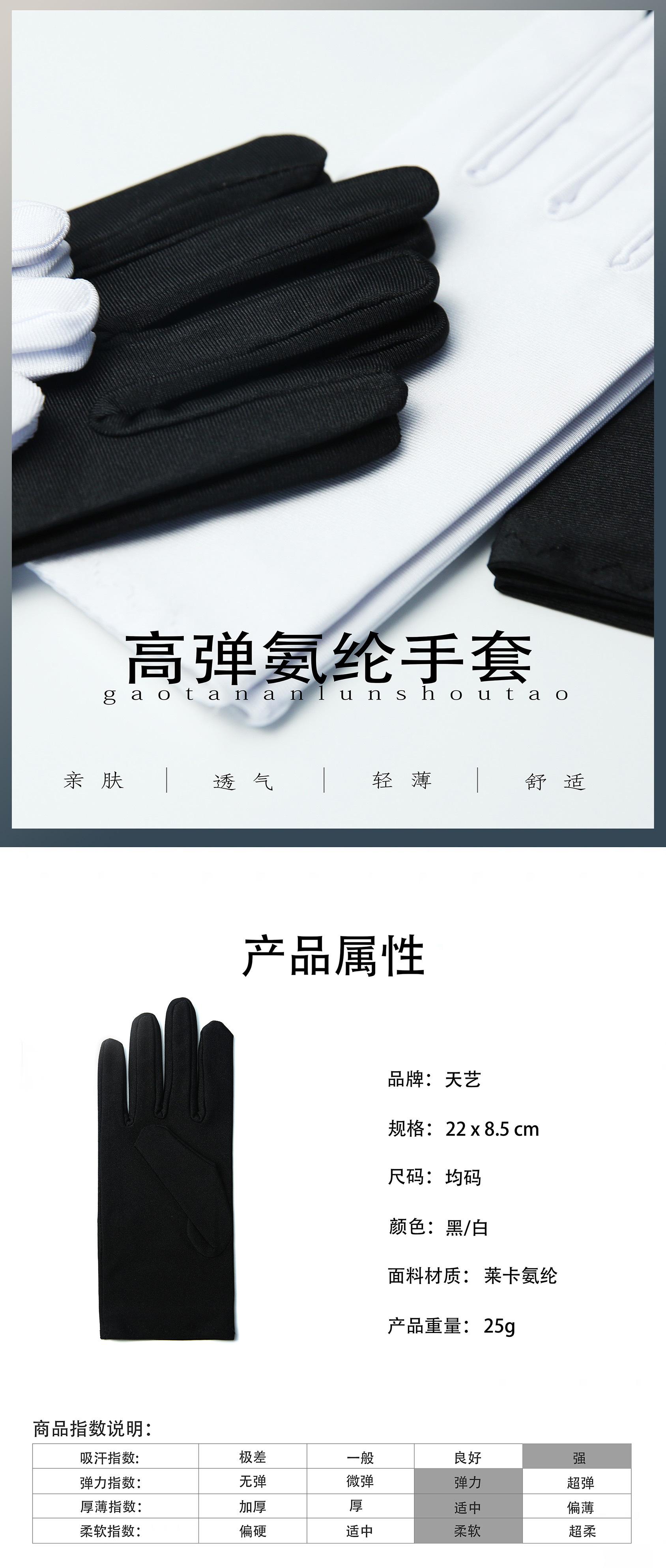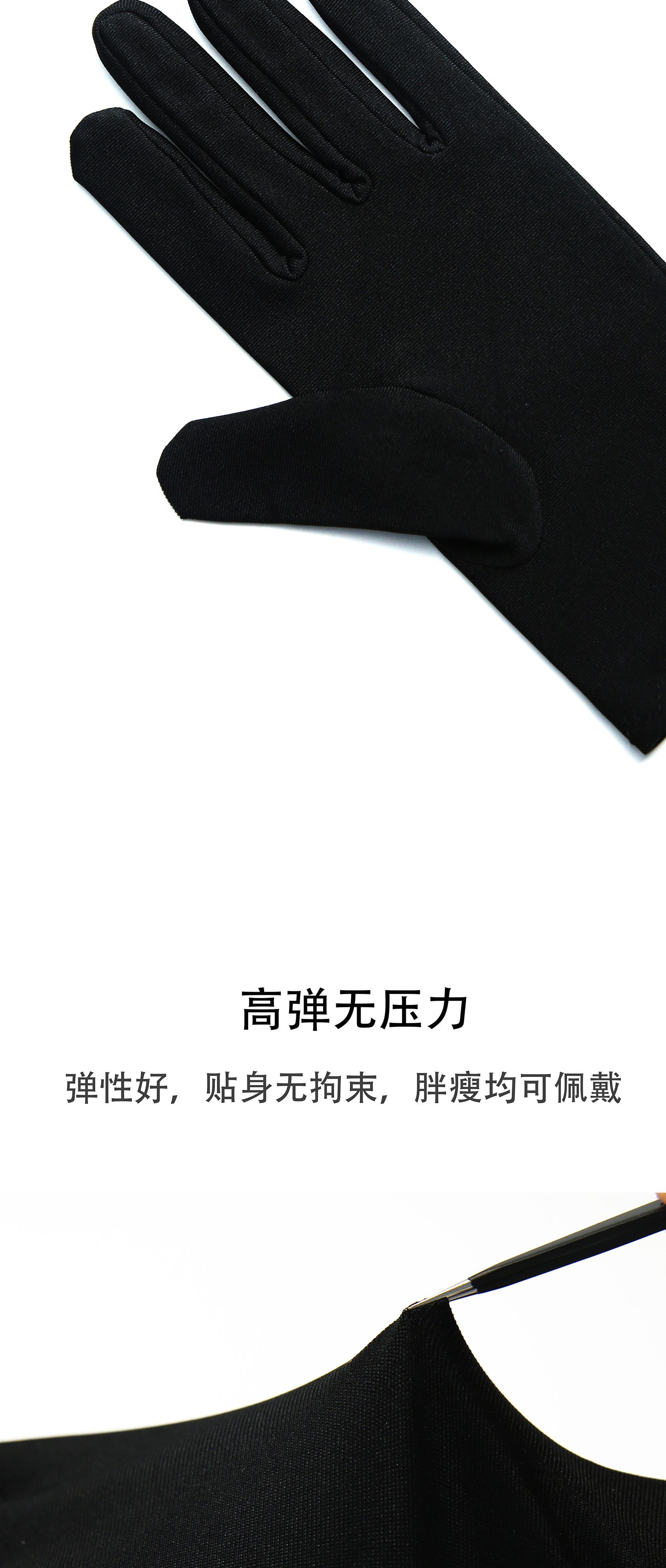 Compra Suministro de Fábrica Guantes de Licra Spandex de Alta Elasticidad para Hombre y Mujer Negro y Blanco Delgados Cortos Etiqueta Joyería Actuación de Baile Protección al por mayor en Joom.pro