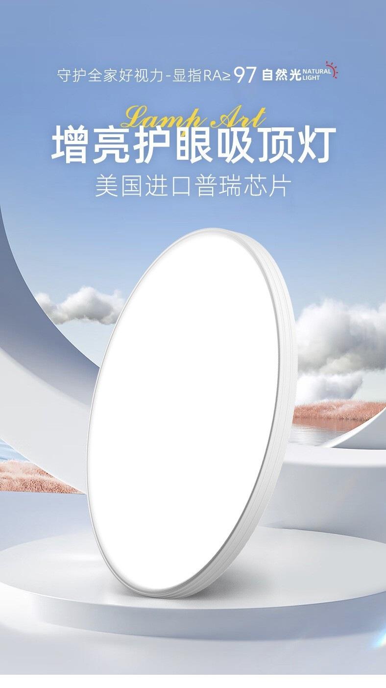 Zhongshan Decoración del hogar Iluminación Purui Espectro completo 98 Lámpara de techo simple con protección para los ojos Iluminación de dormitorio Lámpara de sala de estar Lámpara principal de pasillo