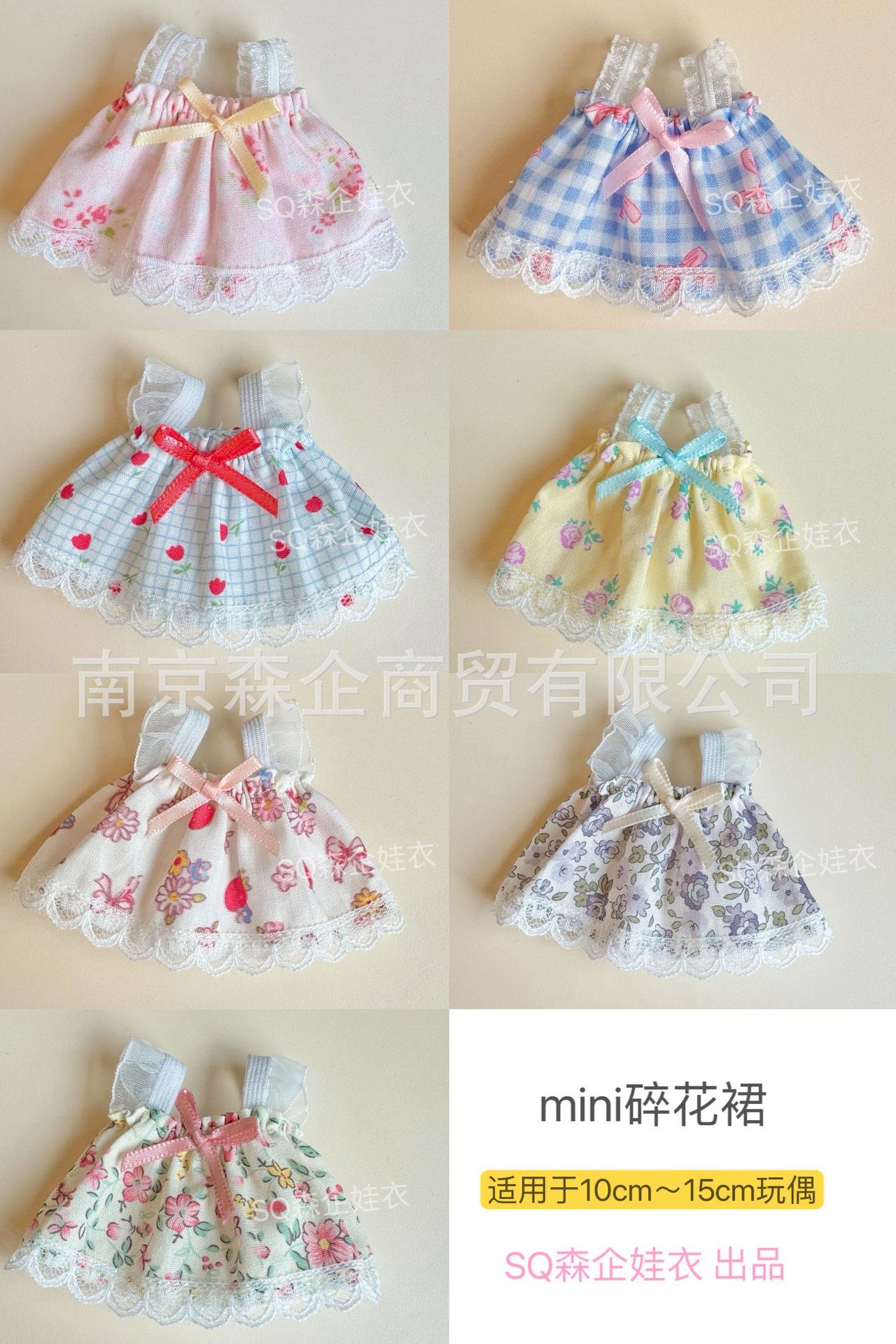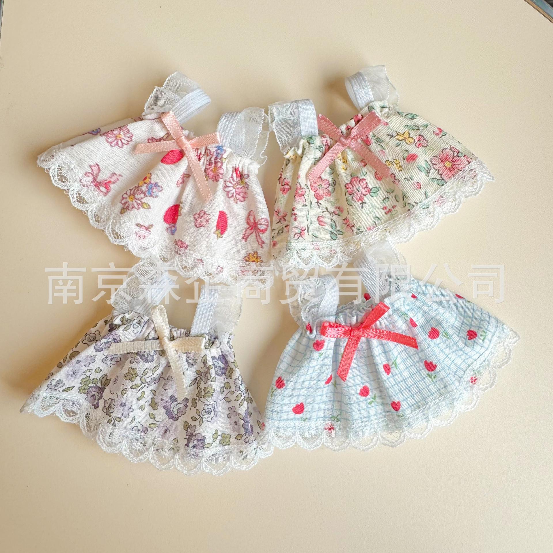 Ropa de Muñeca de 10cm Vestido Floral con Tirantes Venta al por Mayor Algodón Muñeca Felpa Vestido Floral Ropa de Muñeca Kitty Vestido Floral