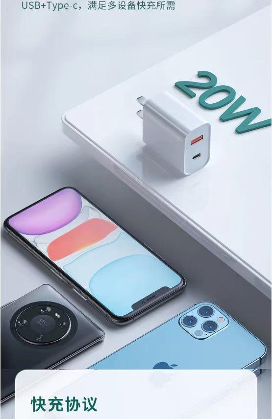 Dual-port pd20w fast charging head, Dual-port pd20w fast charging head (certified and boxed), Dual-port certif...