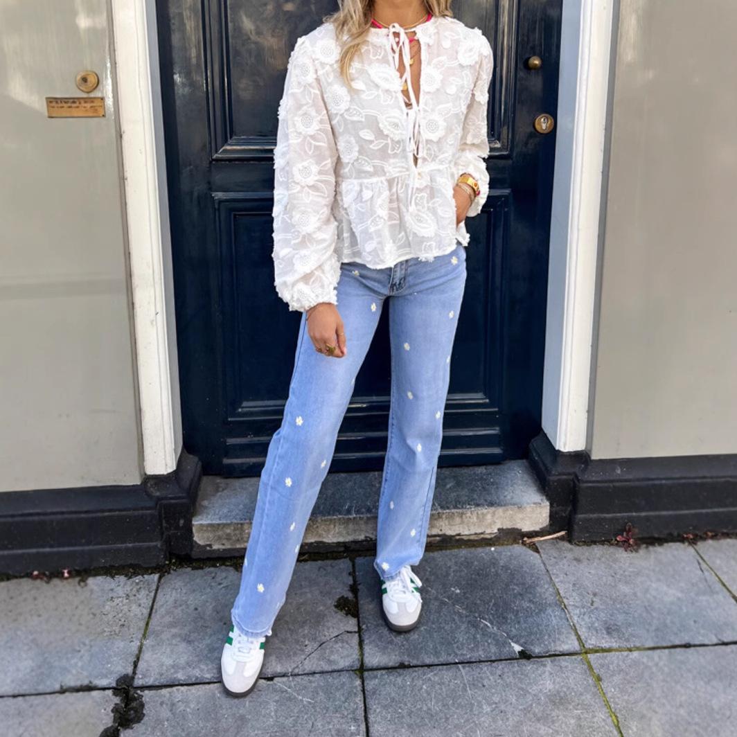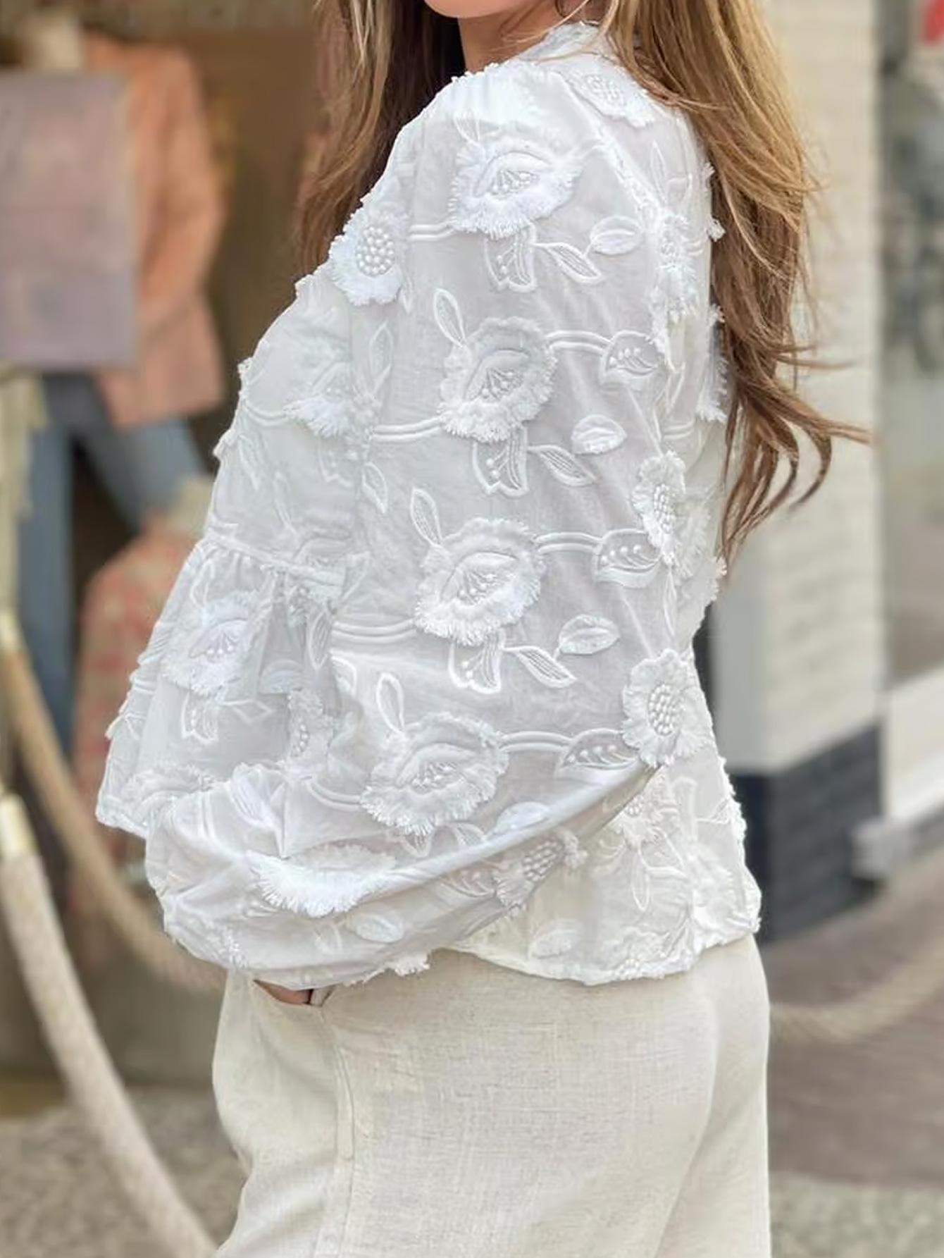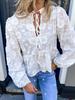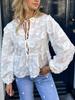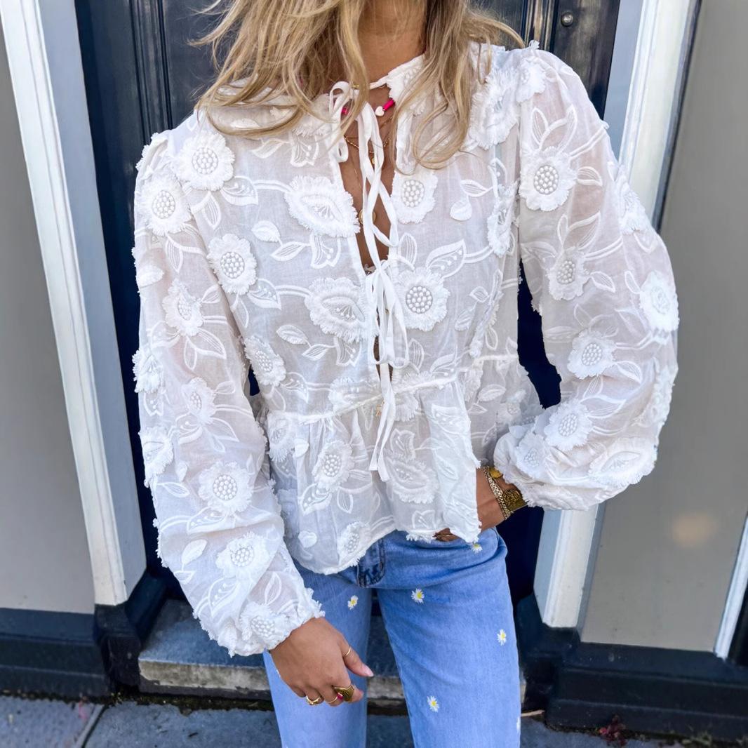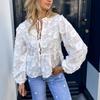 2025 Camisa Larga de Encaje con Aberturas y Cordones para Mujer de Venta Caliente Europea y Americana Primavera y Verano Moda Elegante Sexy Elegante Encaje Mangas Largas