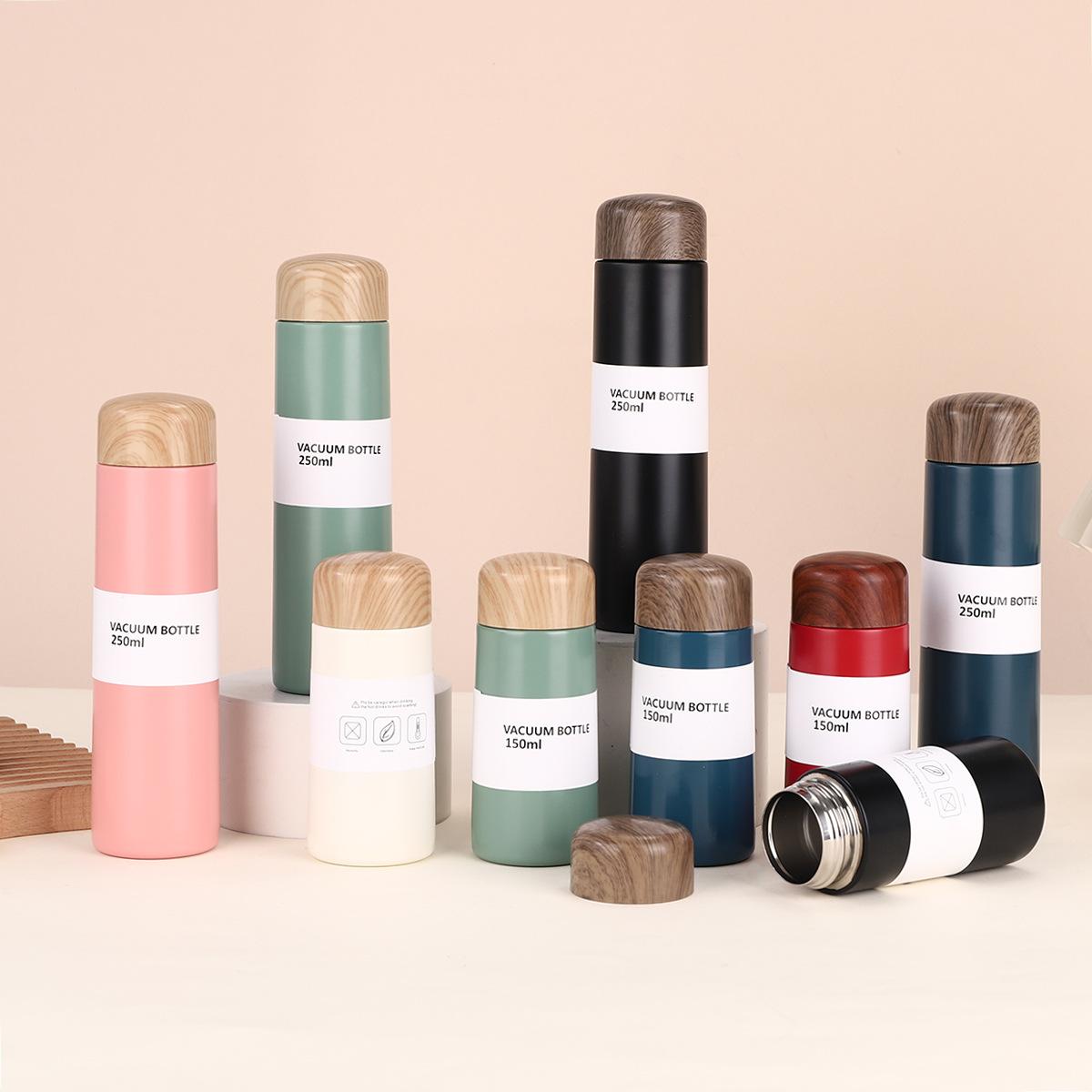 Nuevo Termo de Acero Inoxidable 304 con Tapa de Grano de Madera al Vacío Vaso de Agua para Estudiantes Vaso de Regalo Portátil Vaso Pequeño de Bolsillo
