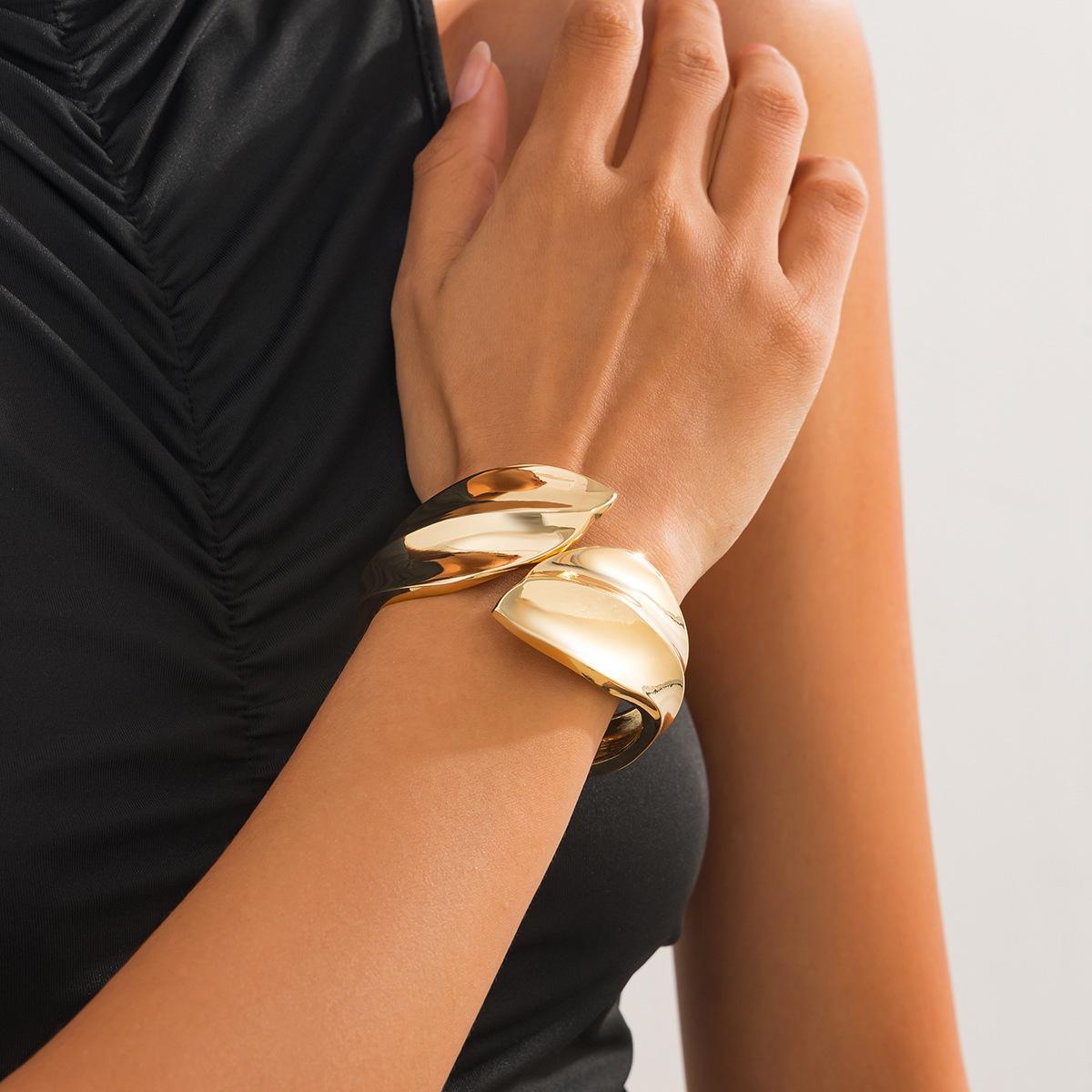 Pulsera Europea y Americana Transfronteriza Hojas Exageradas Pulsera Brillante Personalidad Raya Irregular Pulsera Abierta Joyería
