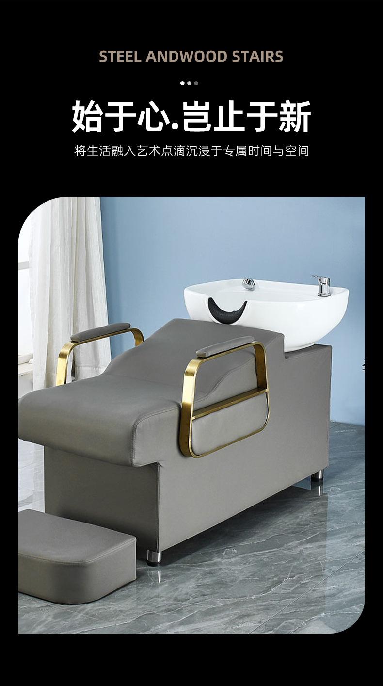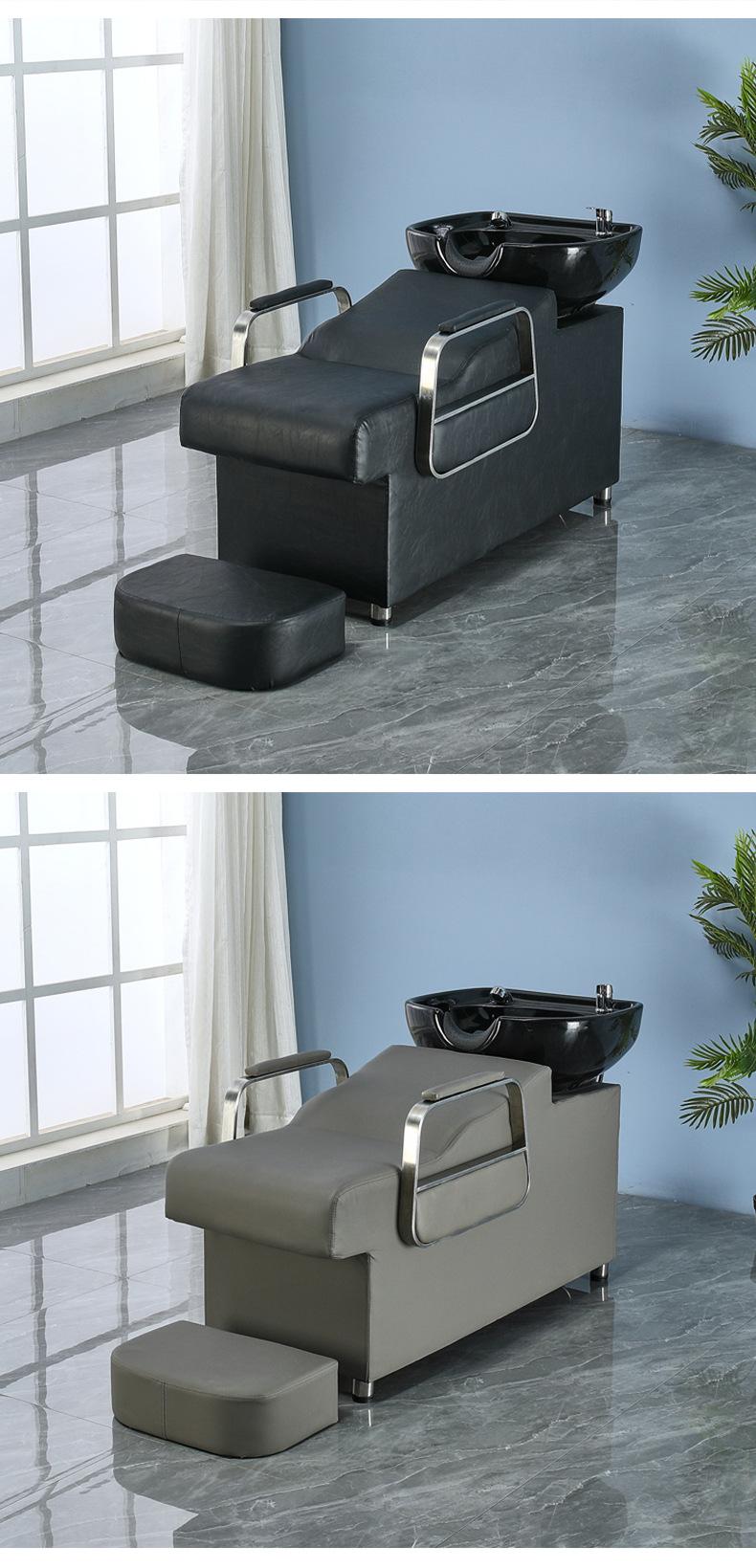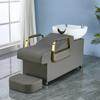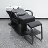 Cama de Lavado para Salón de Belleza, Cama de Lavado Sencilla Semi-Reclinable para Salón de Belleza, Marco Metálico, Lavabo de Cerámica, Cama de Lavado de Lujo Accesible para Barbería